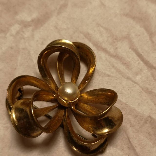 Re: Vintage jewellery. Golden brouche with a pearl.