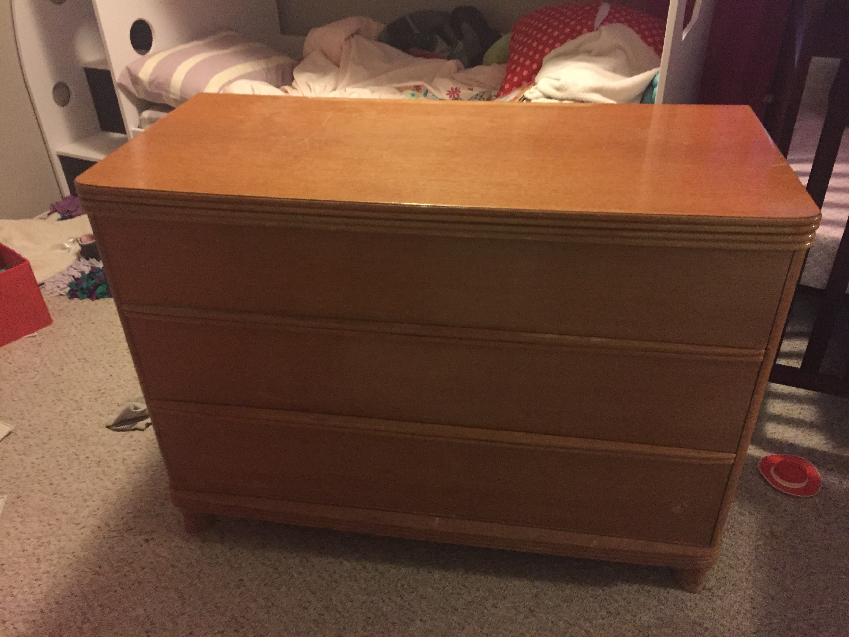 I picked up this dresser at a thrift store for my daughters' room and I'm just wondering if it has any value (I'd really like to refinish it, but don't want to ruin it, just in case.) The pictures will provide a more accurate description than I could put into words. Thanks in advance, people!