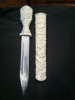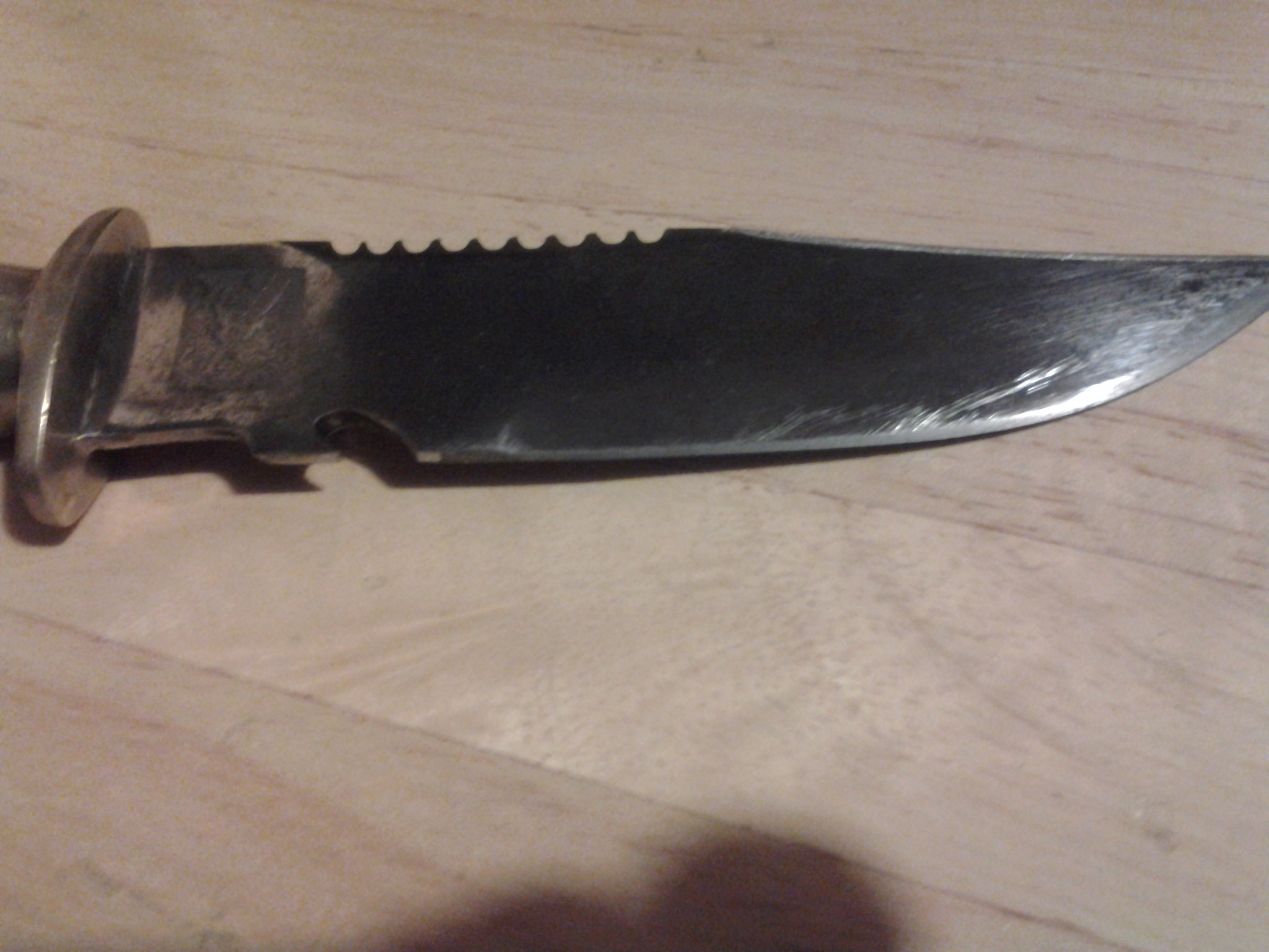 I have a vintage fixed blade knife in a leather sheath. The knife from tip to tip is 11" long, the blade itself is 6" long. The initials E.P.S.C. are on both sides of the blade. I am not sure what the handle is made of but looks like bone.