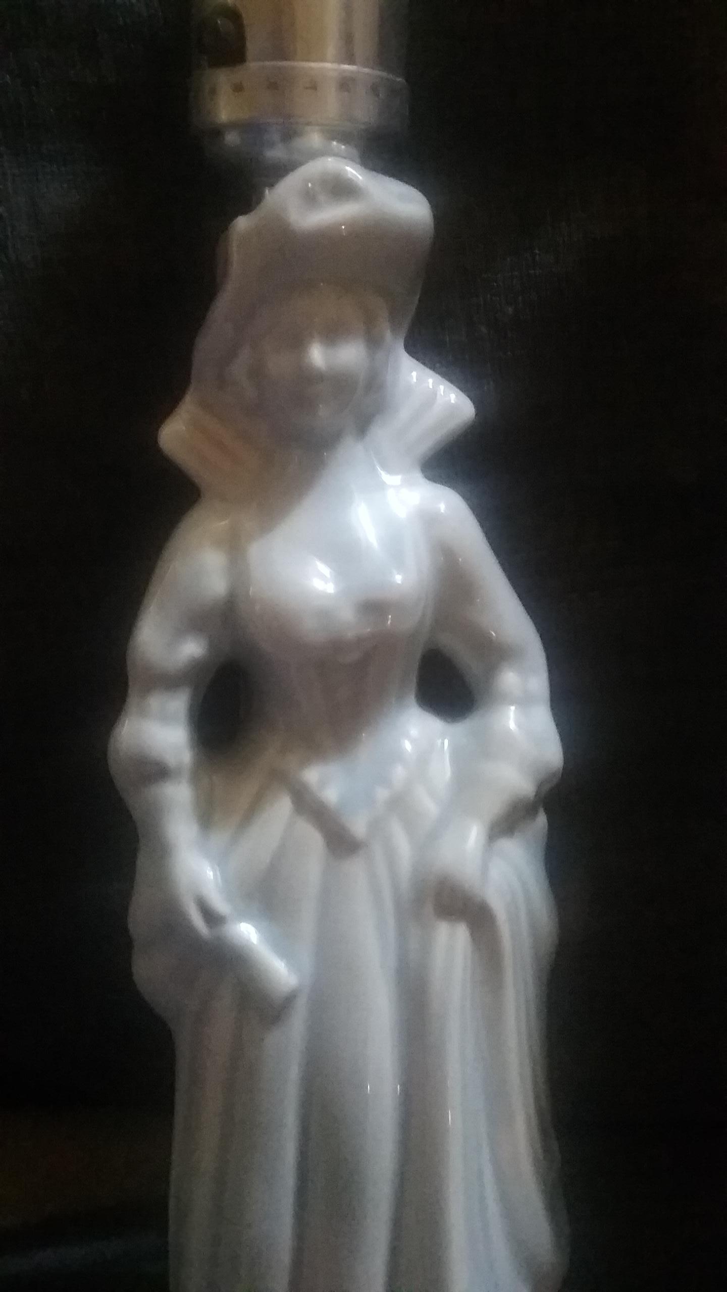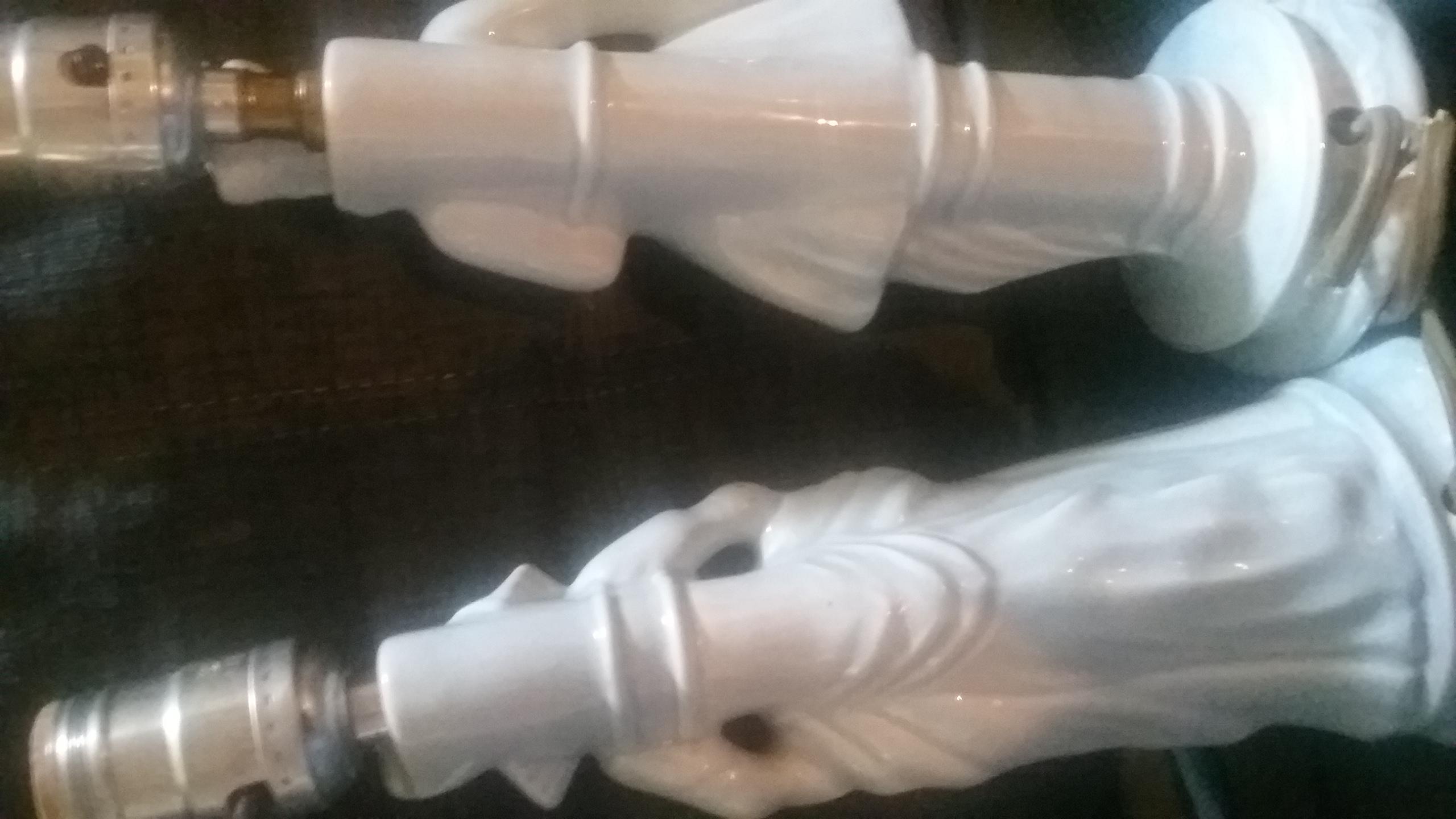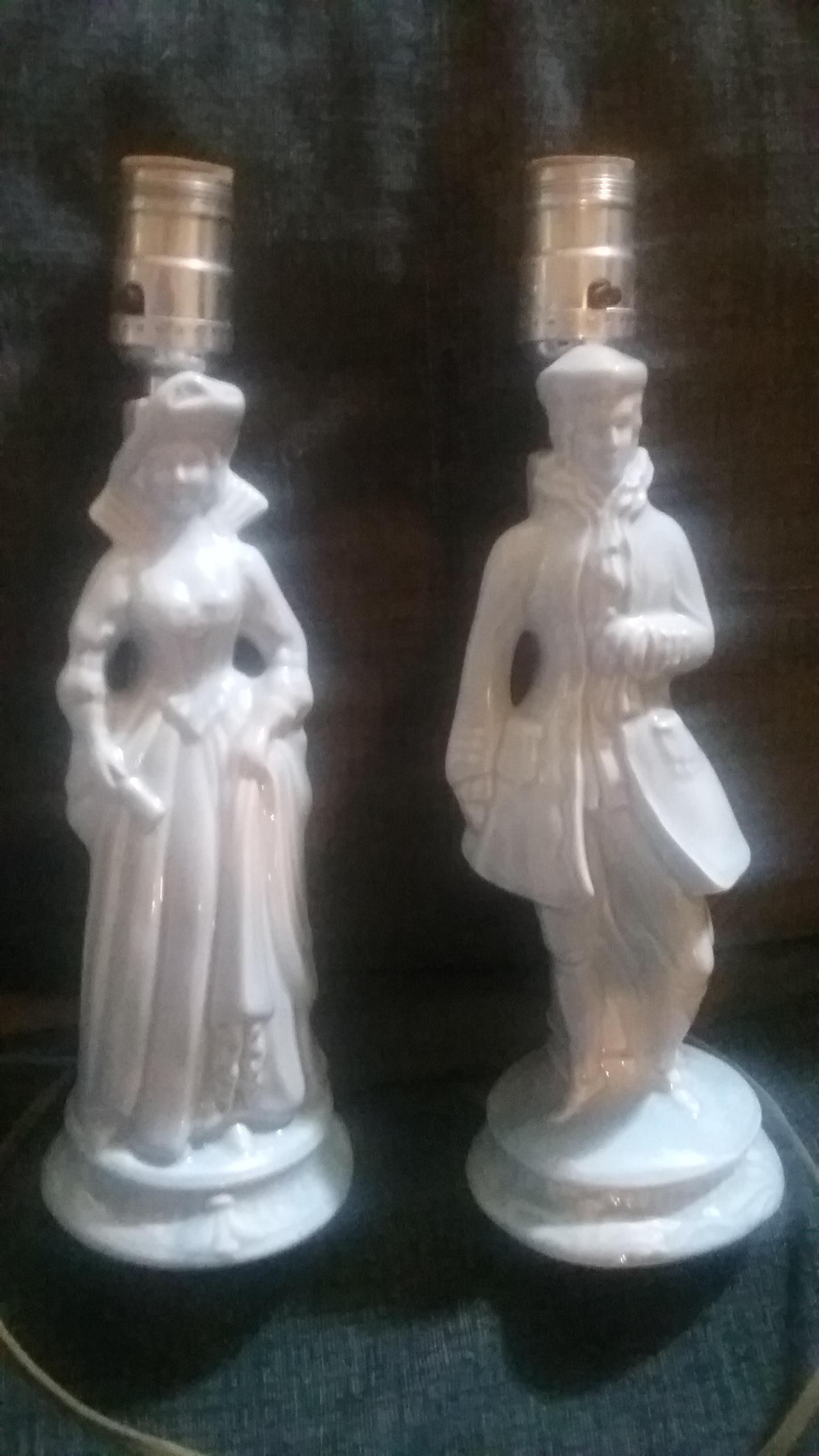 Bluish color vintage ceramic lamps of matching man and woman. No markings found. In perfect working condition with no chips or scratches.
