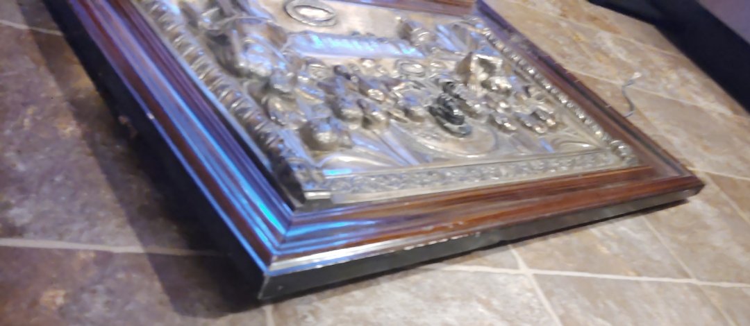 Vintage Last Supper 3D Metal Framed Artwork. Dating to Unknown. Materials: Metal, Wood Frame. Estimated value: $150 – $250. Condition: Excellent. The market for decorative metal artworks is stable, with moderate demand.