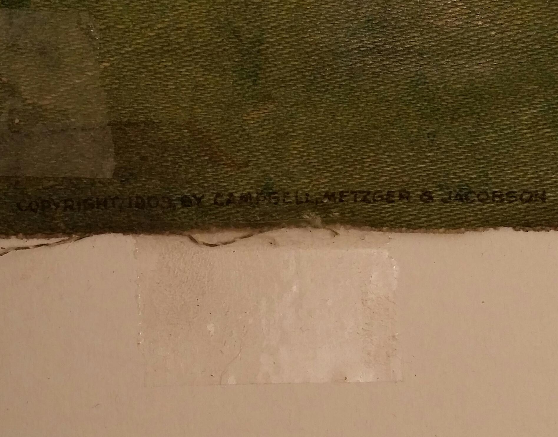 It's an 1890's print, in the "Gibson Girl" style popular at the time. Is it on aper or cloth? Campbell, Metzger and Jacobson did a lot of promotional prints and prints on linen and even pillow cases.