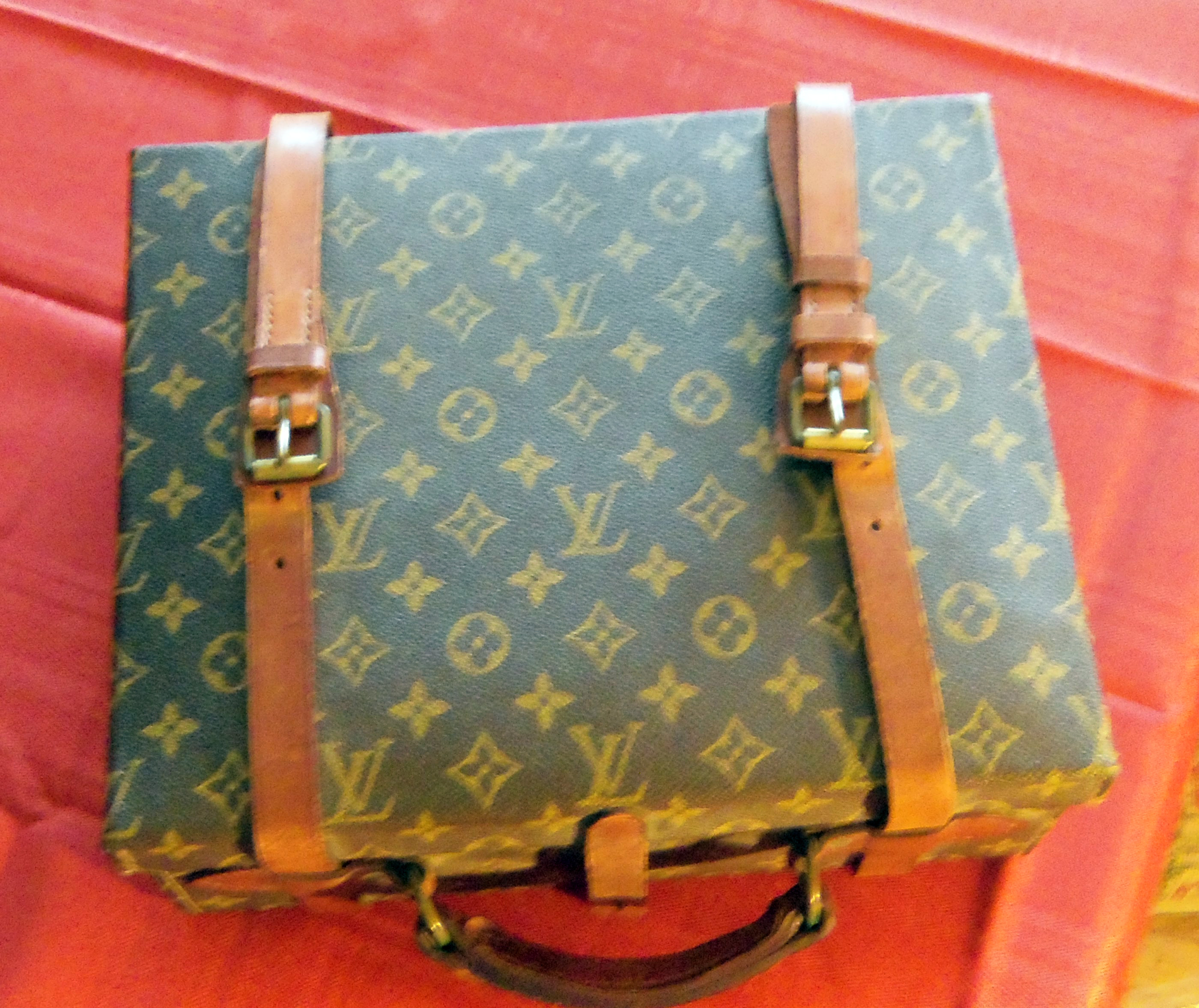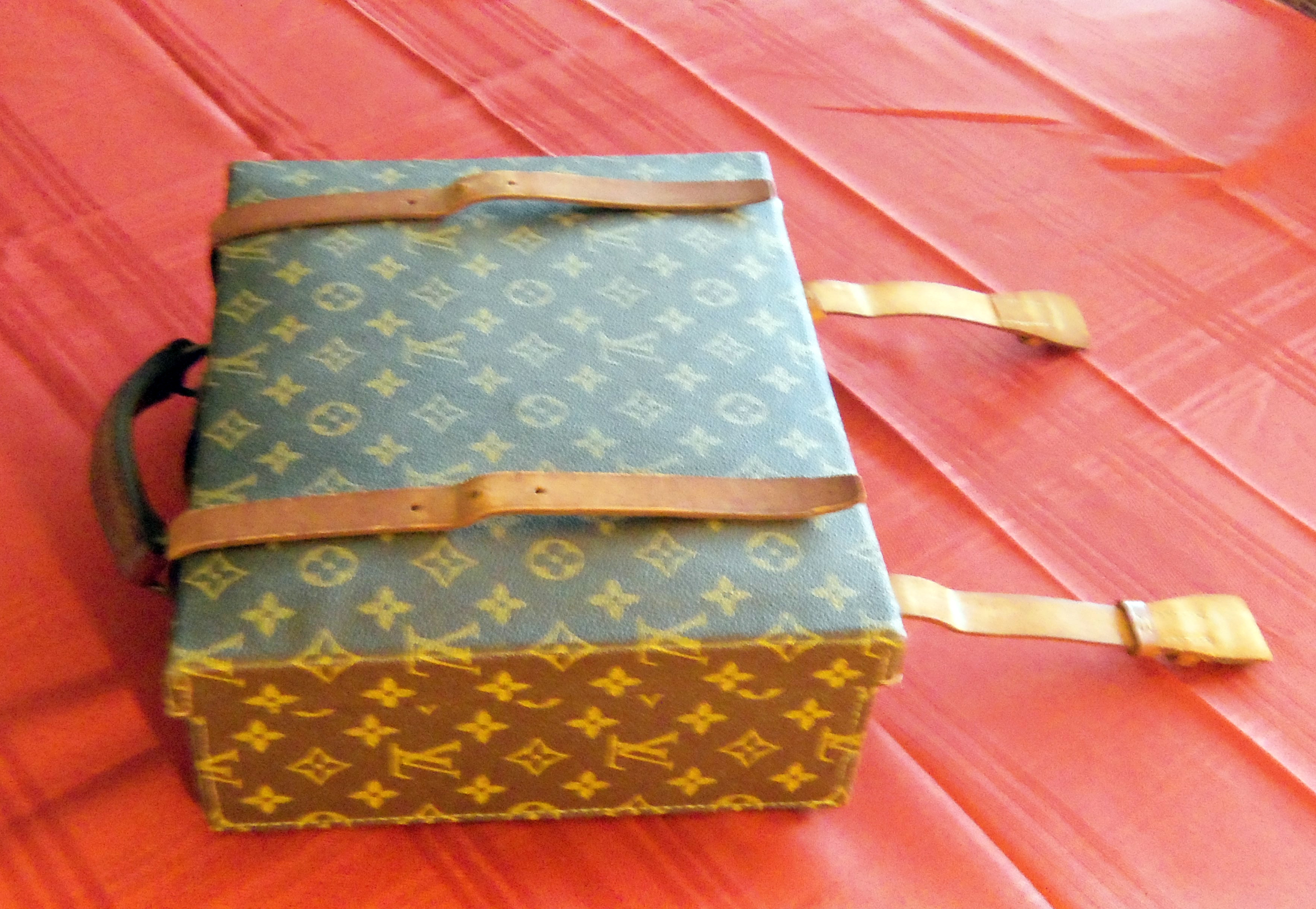 Unmarked Vintage Louis Vuitton hard sided luggage. Age is unkown as there are no attached tags or stamping on the item. The item is in very good condition with no scuffs or scratches on the exterior and only minor use marks on the leather interior as well as minor water spots on the exterior leather straps. The LV logo and print seems authentic, is lined up well all around the piece, and all LV markings and logos are going inthe same direction. The case measures 10 1/4" x 12.5", and is 4 1/4" deep and interior is divided into two compartments by a divider in the center. Each section measures about 5.5". As this piece was found wrapped inside of a closet in a house I inherited I have no documentation or information on its history. Please contact me if there is any further information I can provide.