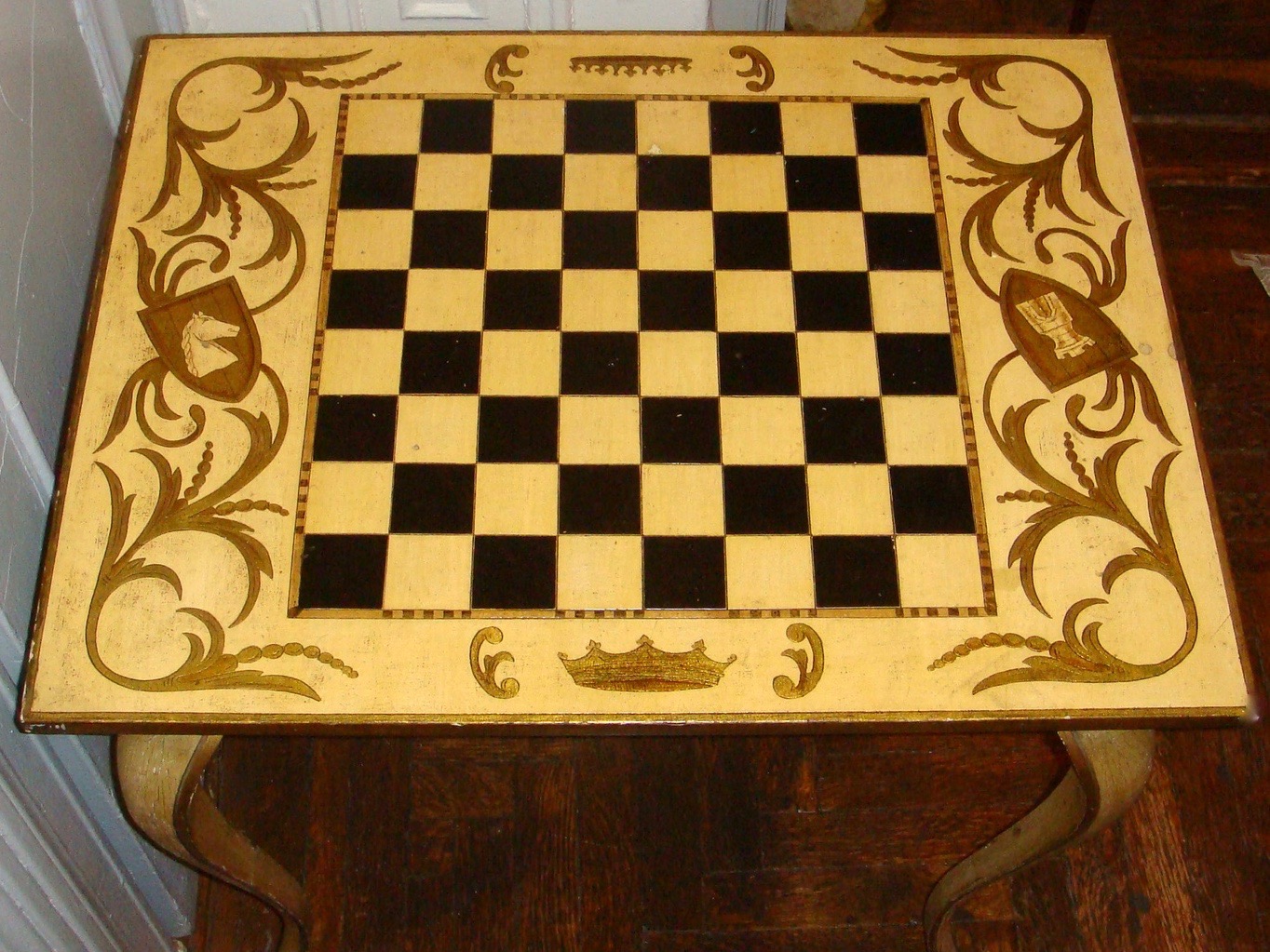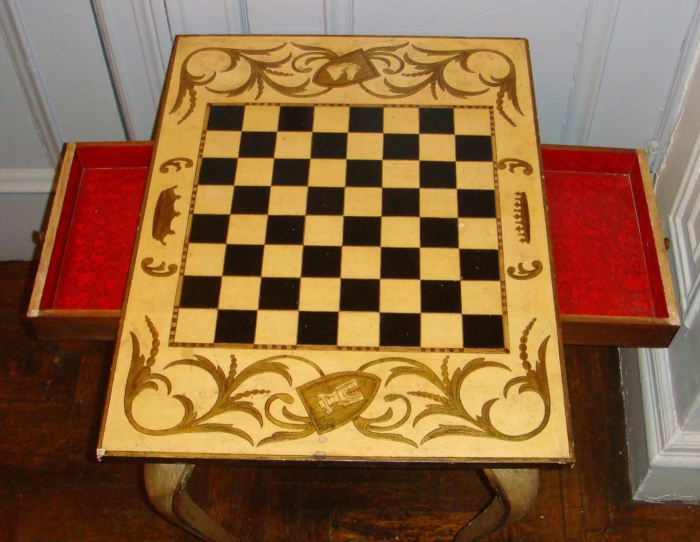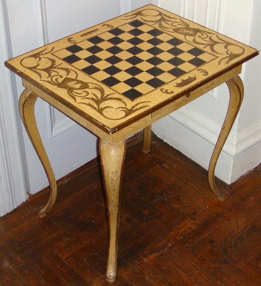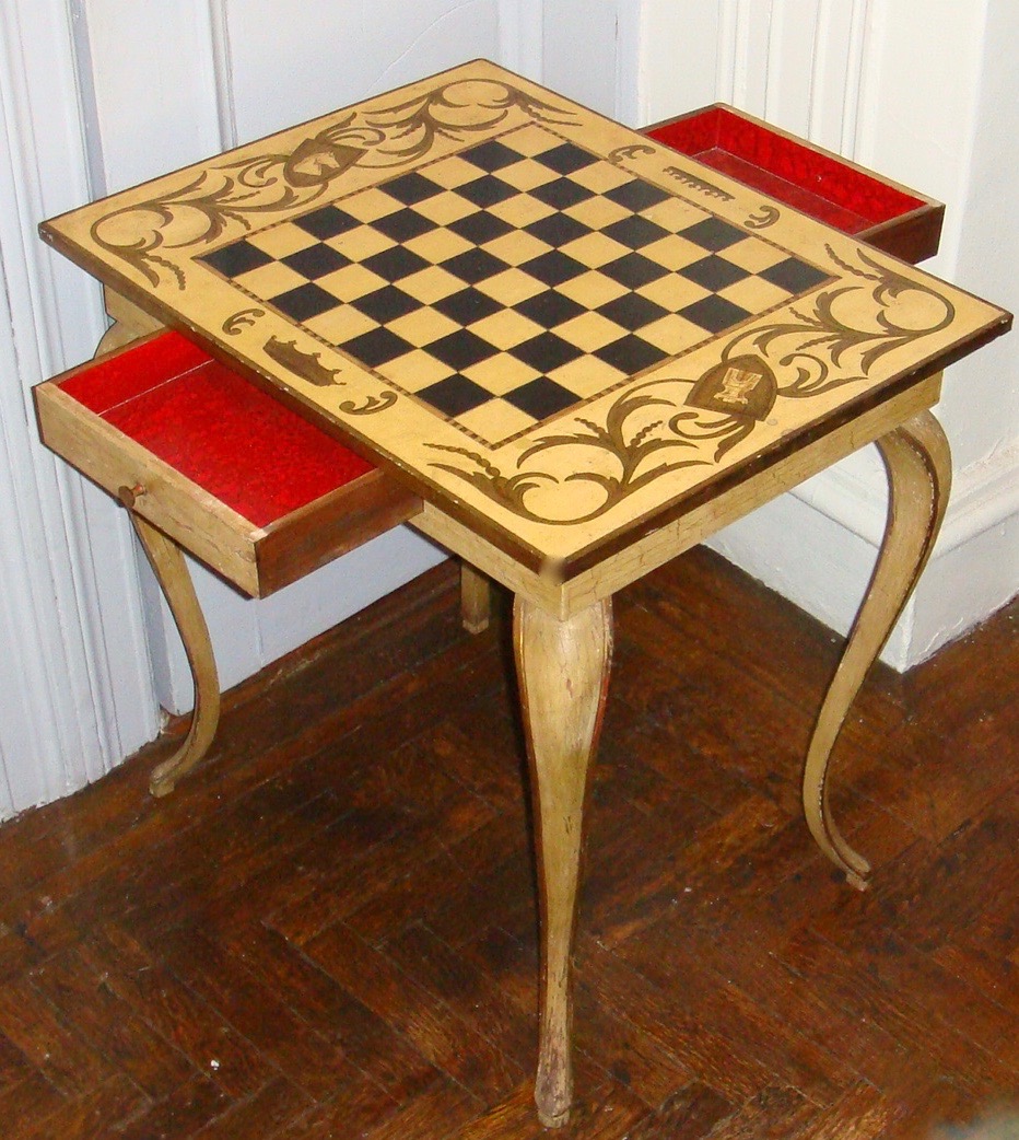 French Vintage Louis XV style wooden chess table with two small draws.