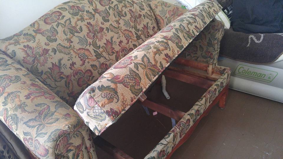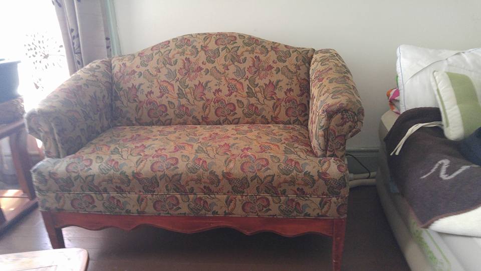 vintage loveseat. wood base, upholstered