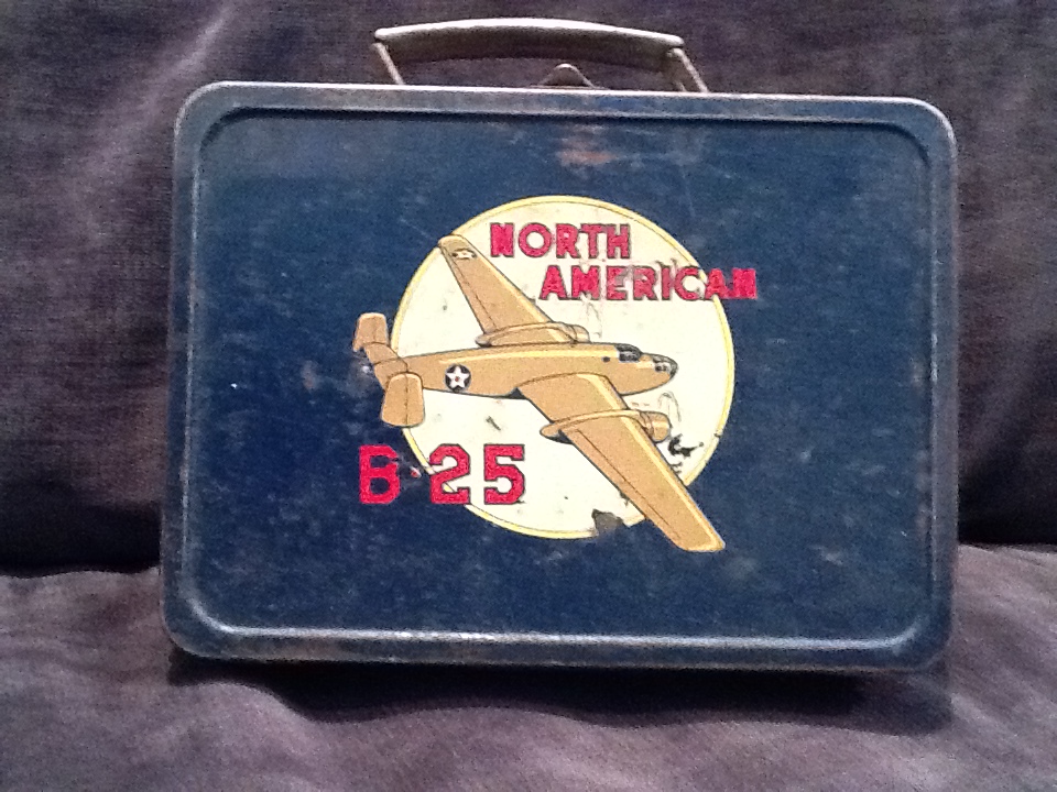 I have this vintage lunch box with North American B-25 on the front.  It also has the picture of the airplane bomber.  There are no more markings anywhere on the whole box.  Any information would be appreciated.