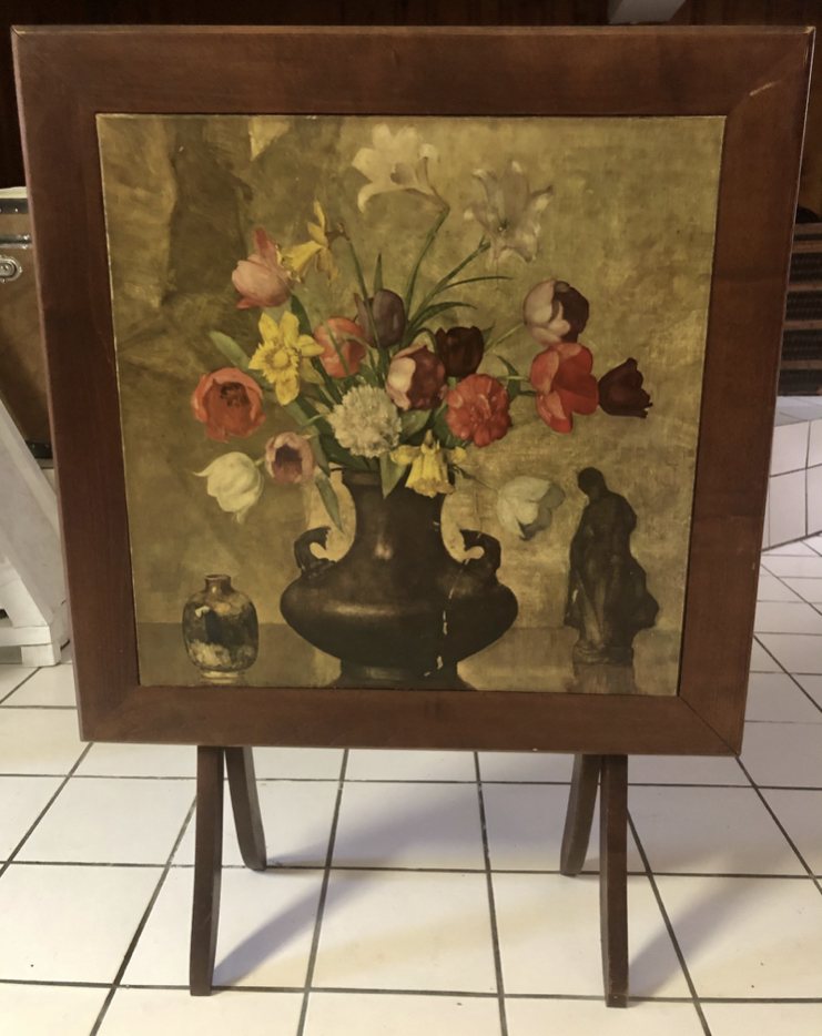 Floral lithograph, Masonite board