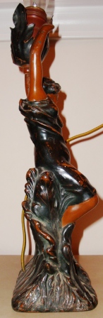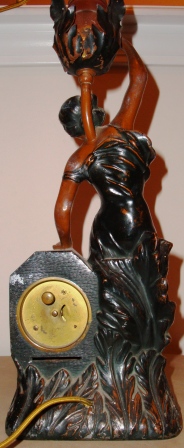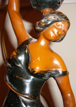 A lady is holding  torch (which is the lamp part of the piece).