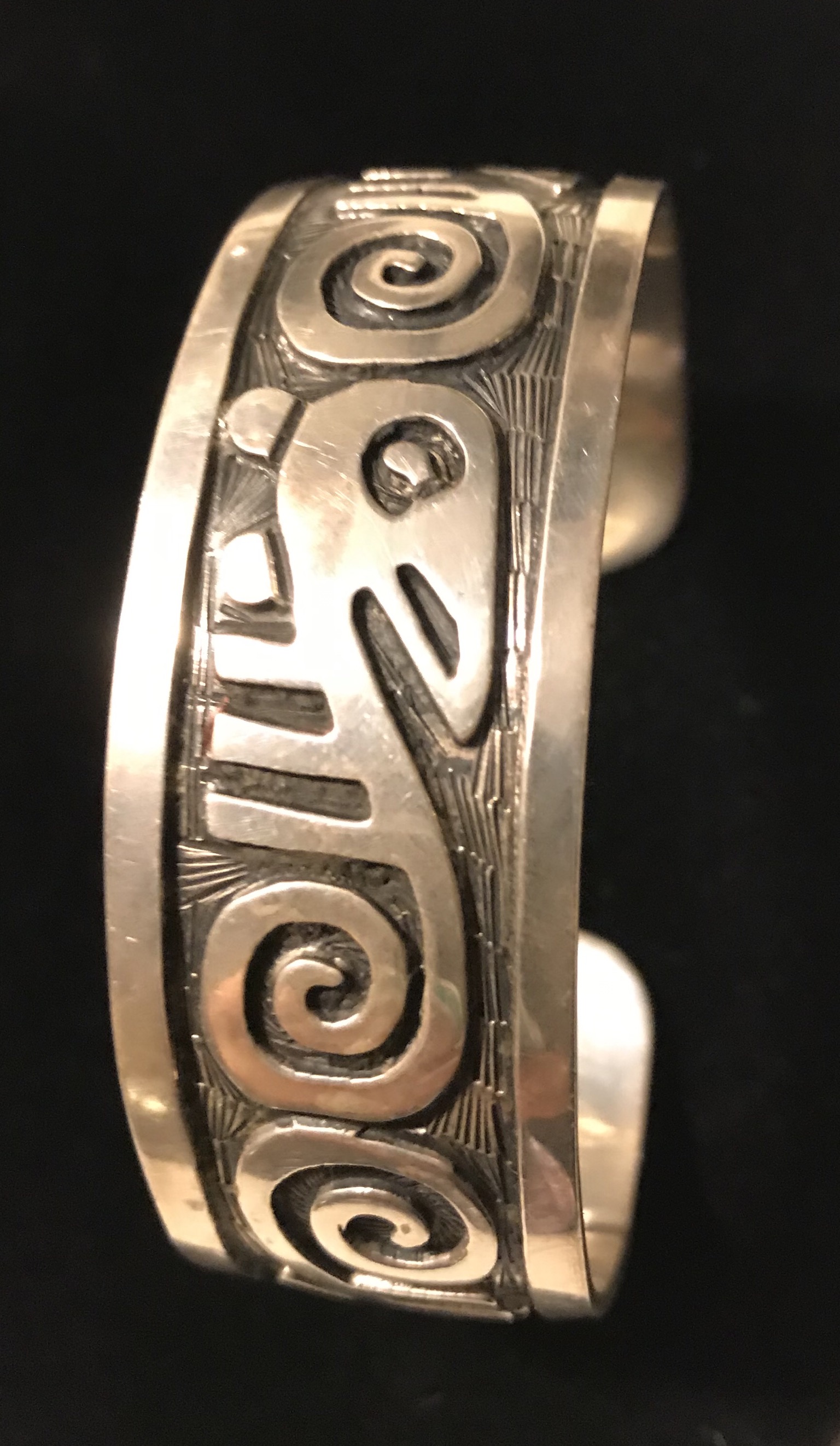 Vintage? Mexico Taxco 9.25 Sterling Silver Overlay Cuff Bracelet.....there is a stamp on the back which I believe reads “Taxco Mexico 9.25 but then....3 letters or intials in the center maybe “FAP” or possibly “FNP”.....is that a bird design on the bracelet ??? Aztec design??? Any information would help on the stamp, the origin, how much is it worth....thank you so much....carol