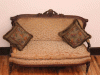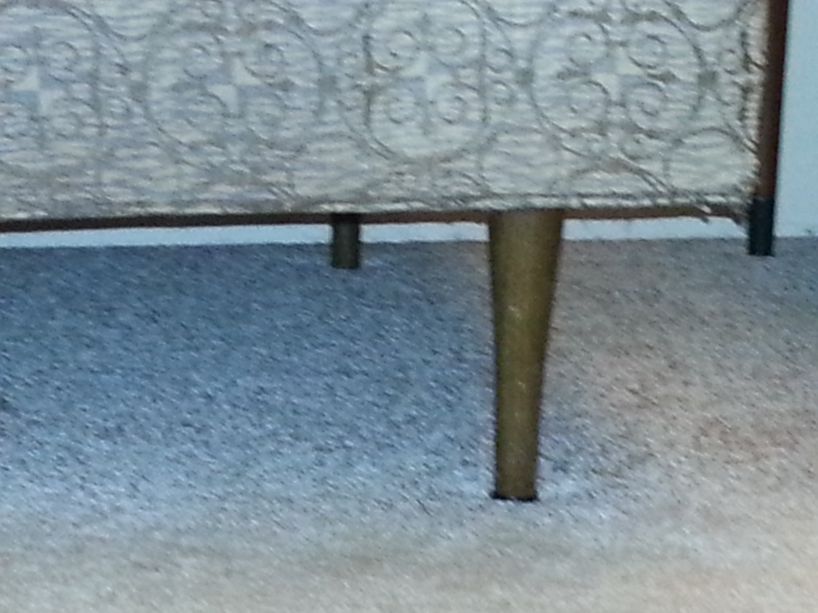 Beautiful original fabric; no label; removable wood legs; some fabric damage on side of sofa.  Would like to know a reasonable price to sell on Craigslist or eBay pick up in Los Angeles, California.