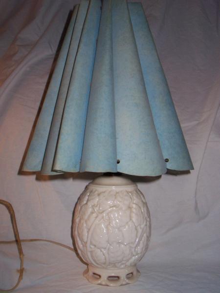 unique milk glass lamp from depression era knob for shade is also milk glass