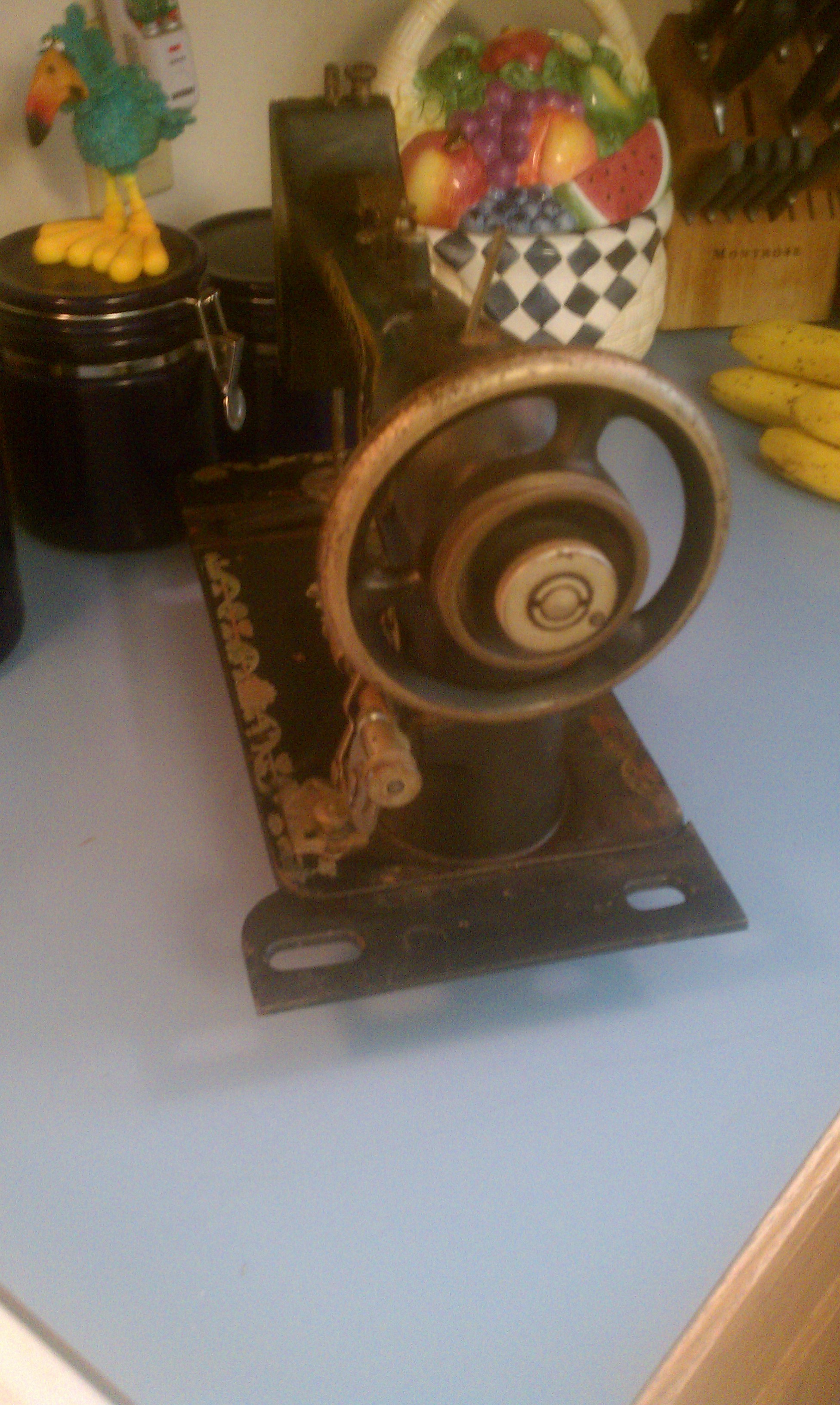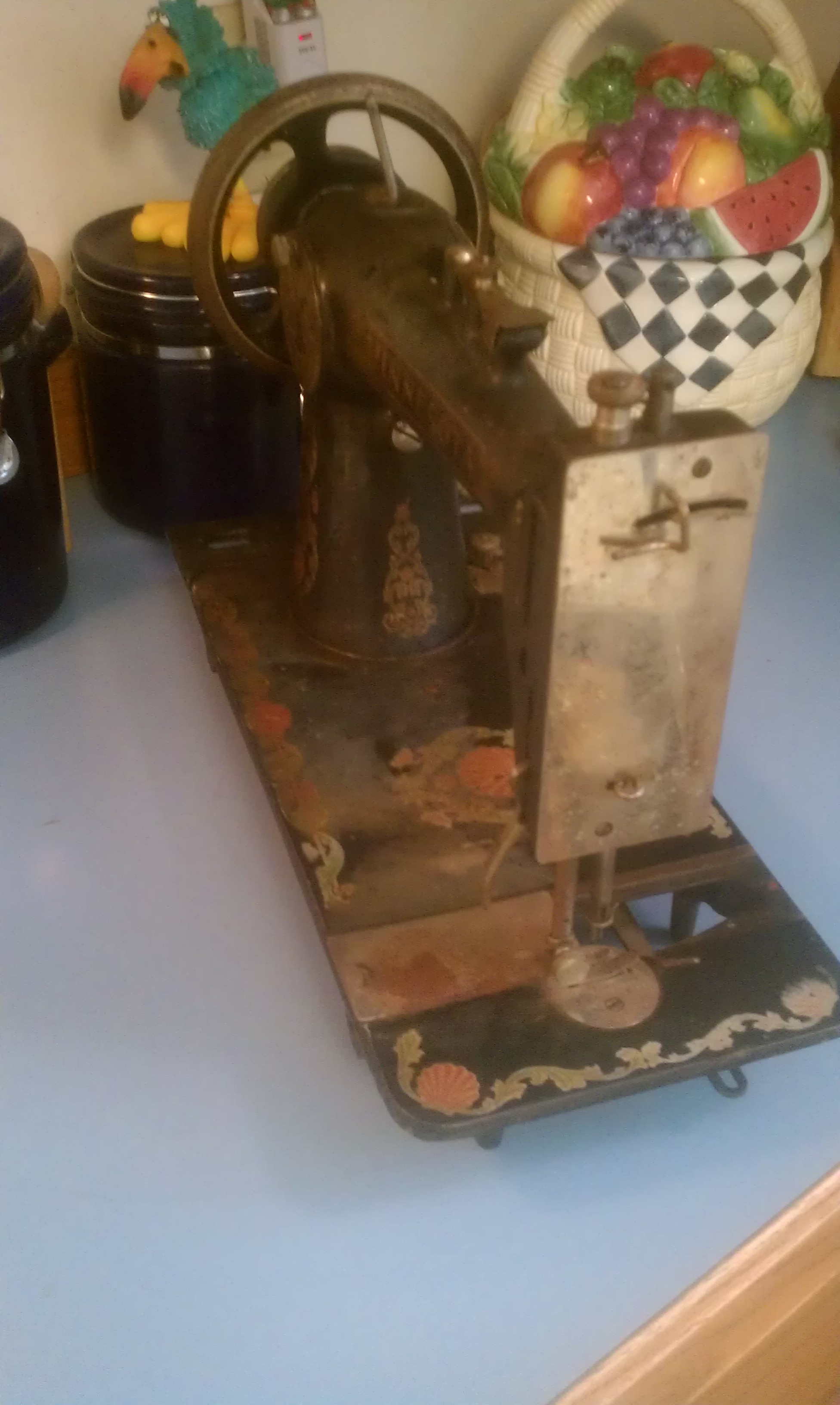 Most of the painting is faded or discolored. Some surface rust on plates. machine only, no treadle.
