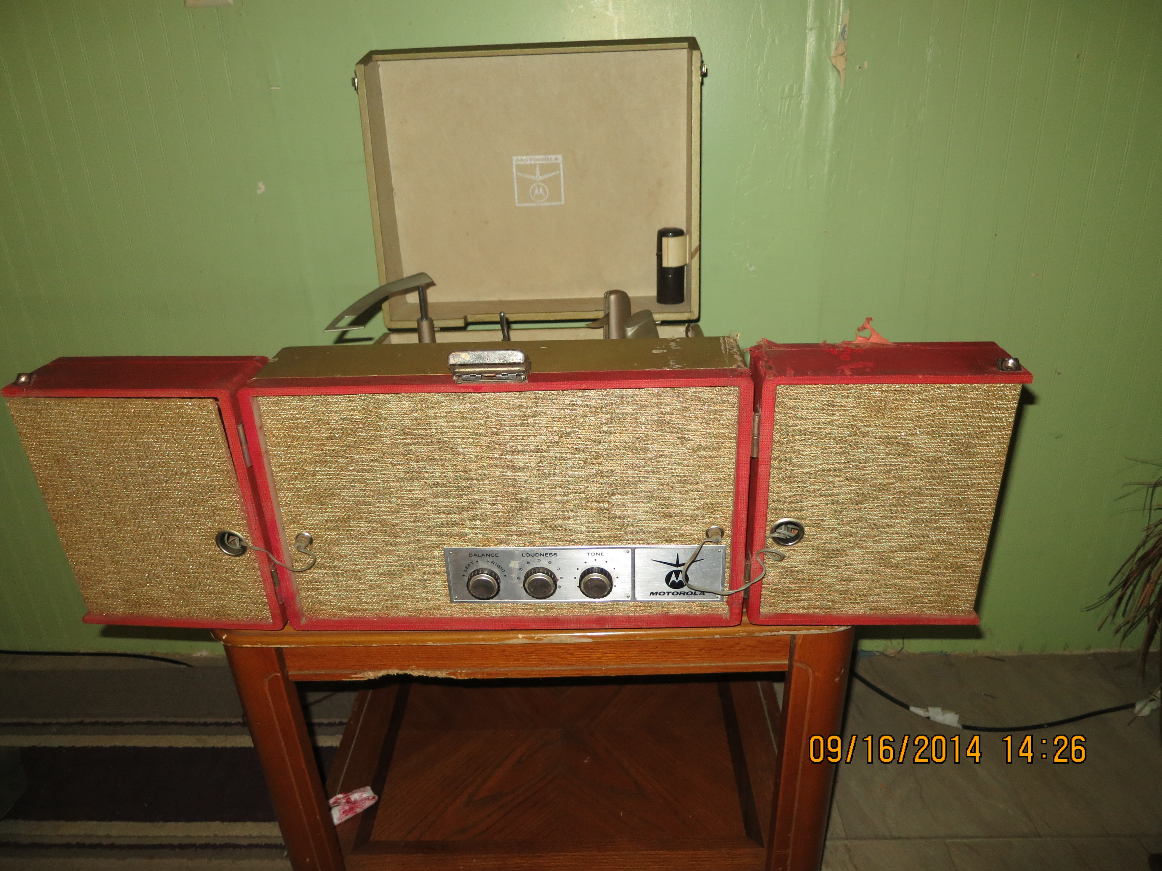 Vintage Motorola model SF15R ,Ser no 2350, made by Motorola INC, Chicago IL...4 speed 16,33,45,78...,has built in speakers, does work ,needs needle....has speed adapter