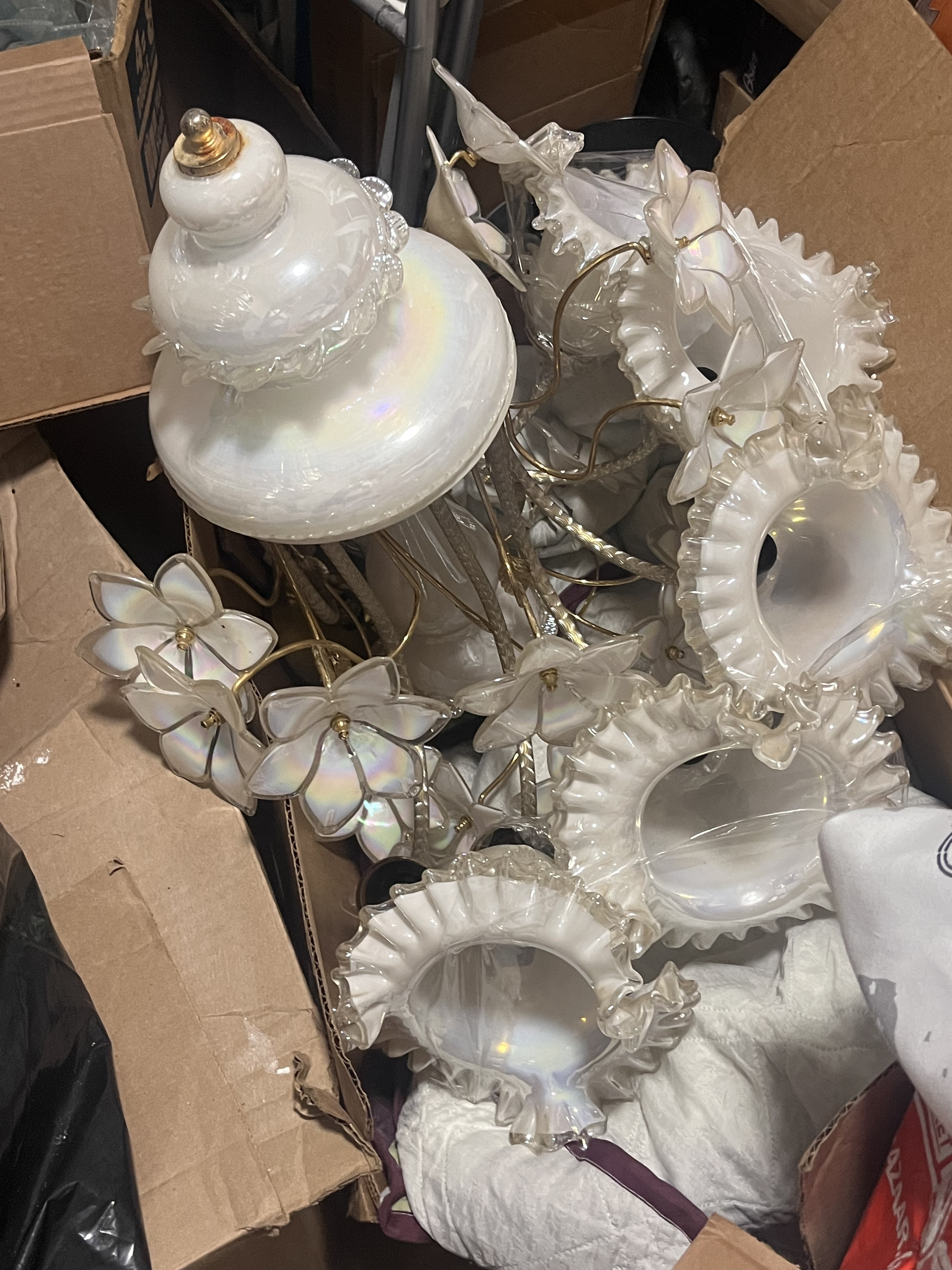 I have a murano glass chandelier with 8 arms, 5/8 flowers with one broken. Needs cleaning because of dust.