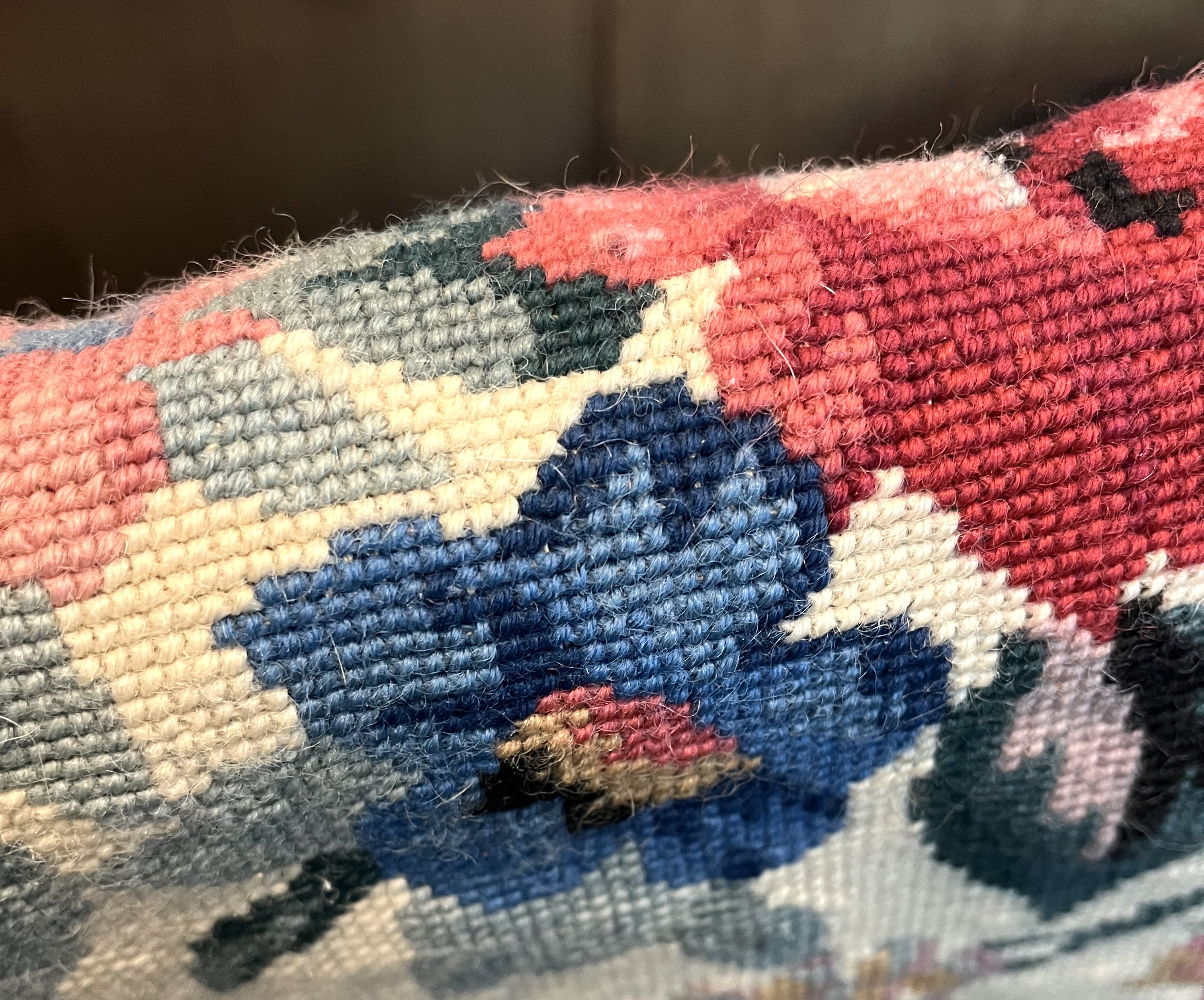 Collector Appeal: Collectors value needlepoint rugs for their artistic designs, craftsmanship, and historical significance. The floral motif is particularly sought after, as it aligns with classic interior design trends. Additionally, the rarity of well-preserved pieces from this era adds to its desirability.