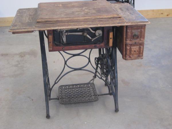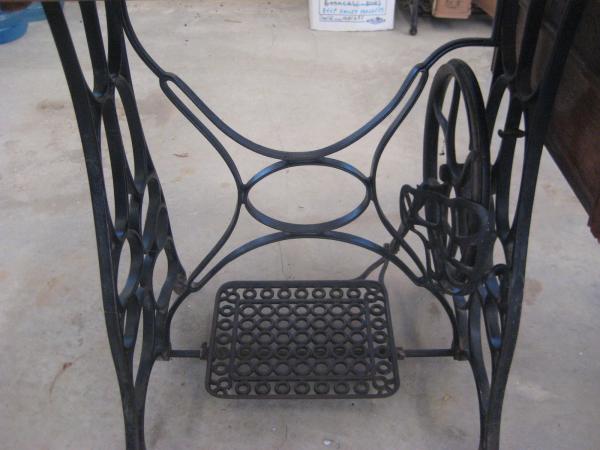The wood cabinet is in poor condition, however the metal treadle base is in very good condition.