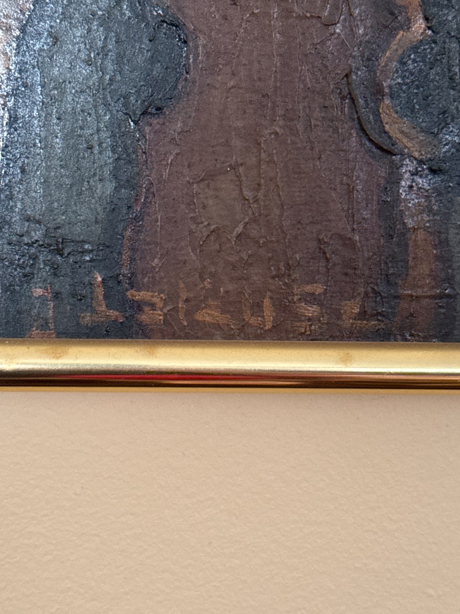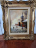 Condition Assessment: The painting is in fair condition, with some visible wear and tear. The canvas shows signs of age, including minor cracking and discoloration. The frame has some scratches and wear, but it remains intact and functional. Overall, the painting retains its charm despite these imperfections.