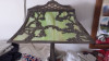 Obtained this lamp at an estate sale. I don't know anything about it. That is why I am using this service. I dismanted the lamp to see if I could find any markings and found one mark on the bottom of the glass when I took off the base. (shown in one of the pictures). There appears to be some type of metal dragons on it. I don't know if it is porcelin or not. I don't know if it has brass. It does appear to have a crackled look when you look at the lamp closely.