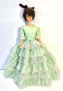 Interesting Facts: The Bubblecut hairstyle was introduced in 1961 and became iconic due to its unique shape and styling. The Southern Belle gown is also notable for its intricate detailing and craftsmanship, reflecting fashion trends of the time.