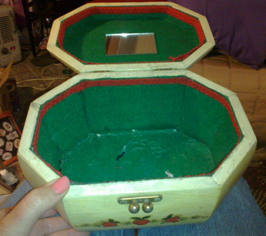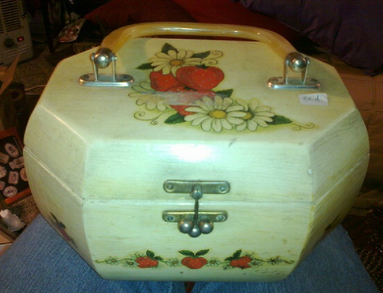 (3 pics approx 8 1/2 by 6 side to side n back to front and 5 n 1/2 tall.looks like the old overnight/make-up case with strawberriea