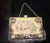 This piece of art has been in my family for generations (approx. 100 years). It looks to be painted on some sort of fabric (possibly a tapestry) with an embroidered frame. The painting is of two children (a girl in a red and white dress with a bonnet and a boy with blue pants, a white shirt and red suspenders) sharing what looks to be a pickle in front of a well. We believe it is in its original frame, though no signature is visible. I'm curious to see if anyone can help identify the piece.