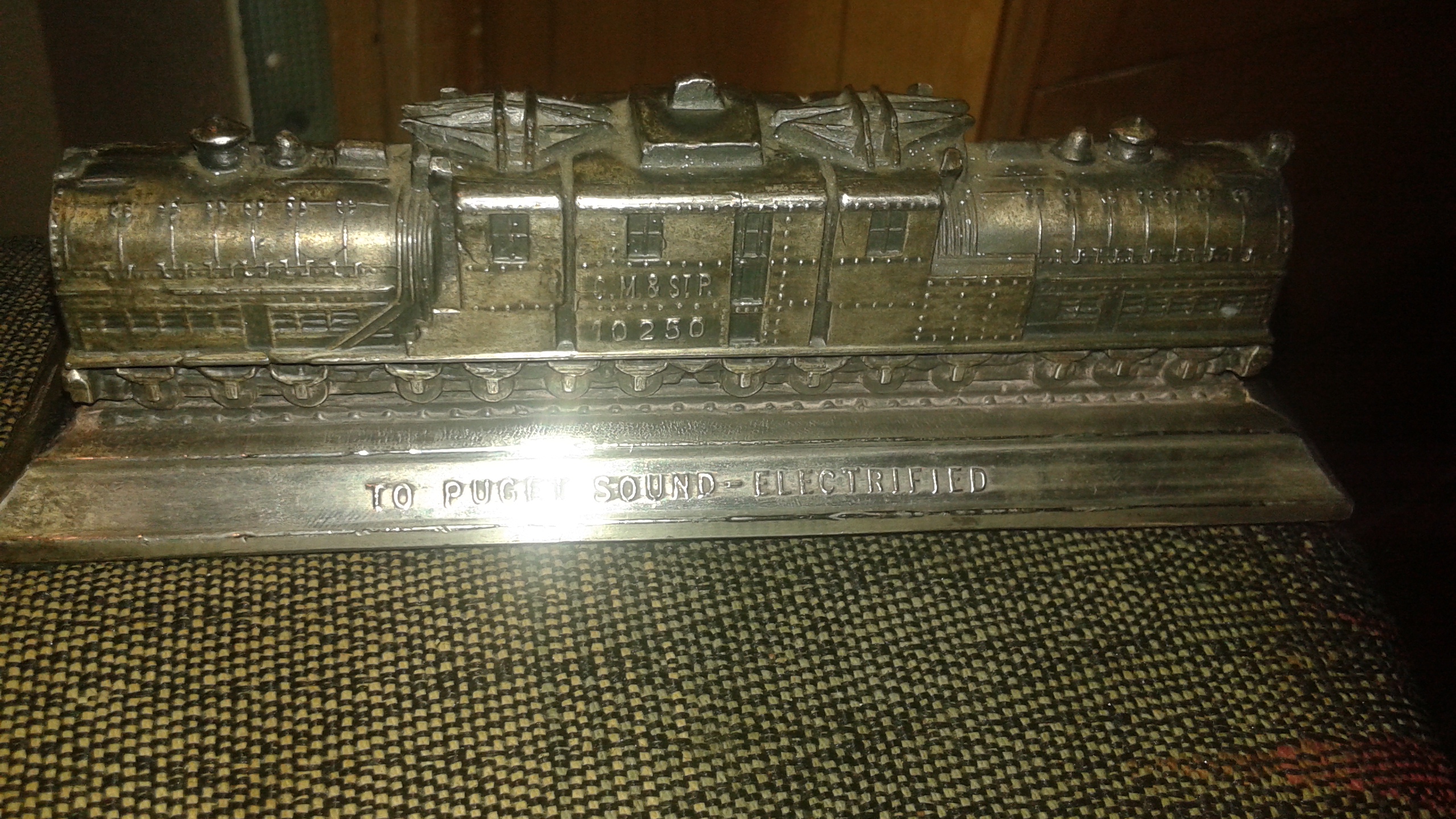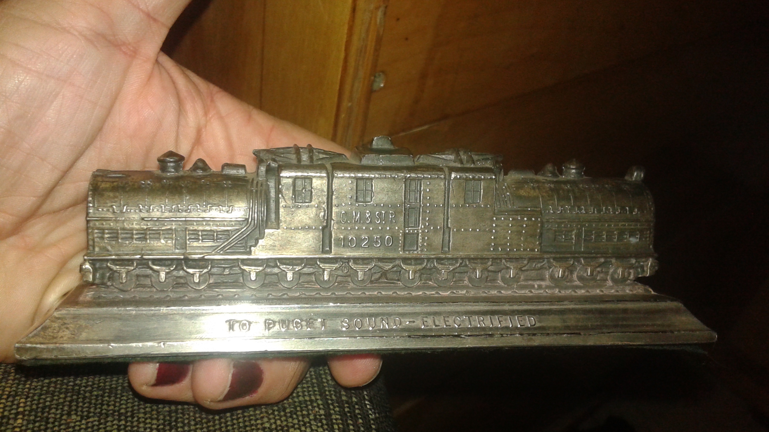 Chicago Michigan St Paul to the Puget Sound elctrofied. Locomotive engine white brass detailed paper weight