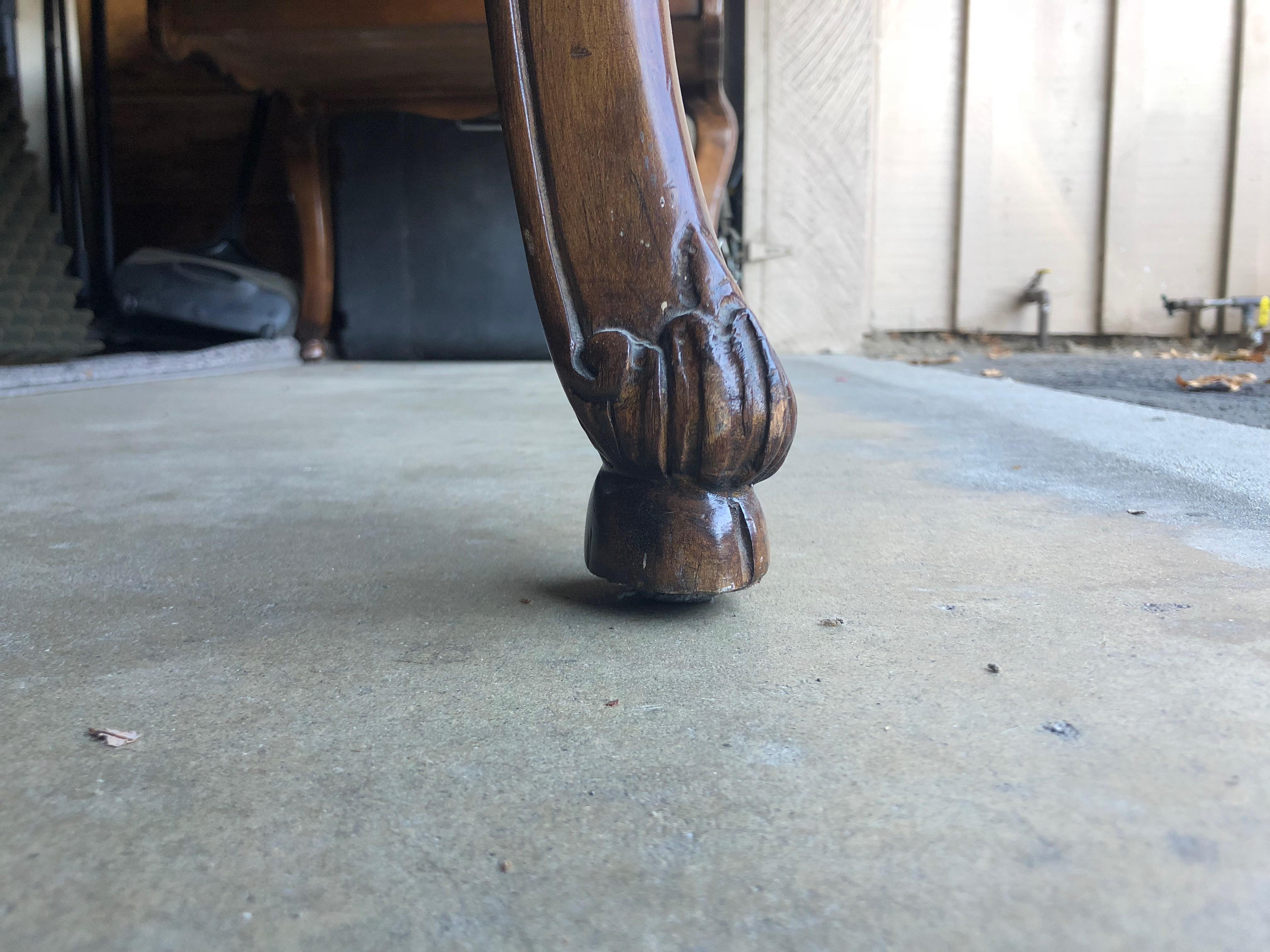 Hi all, I just bought this fantastic piece off Craigslist. The side you see has a pull out tray and the other one looks the same but with a drawer. The very bottom of the legs look like little hooves. There is a thin rectangular wood inlay on the top, which appears to be veneer, and I've included photos of other wood details. Any help with this piece would be appreciated!