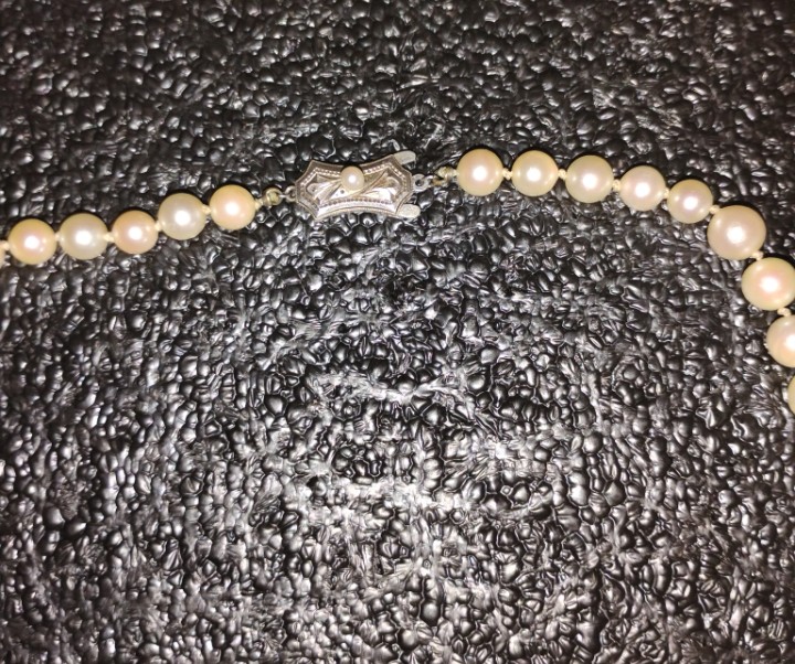 Vintage Pearl Necklace. Dating to Mid-20th century. Materials: Pearls, Sterling Silver. Estimated value: $90 – $200. Condition: Excellent. The market for vintage pearl jewelry is currently stable, with moderate demand.