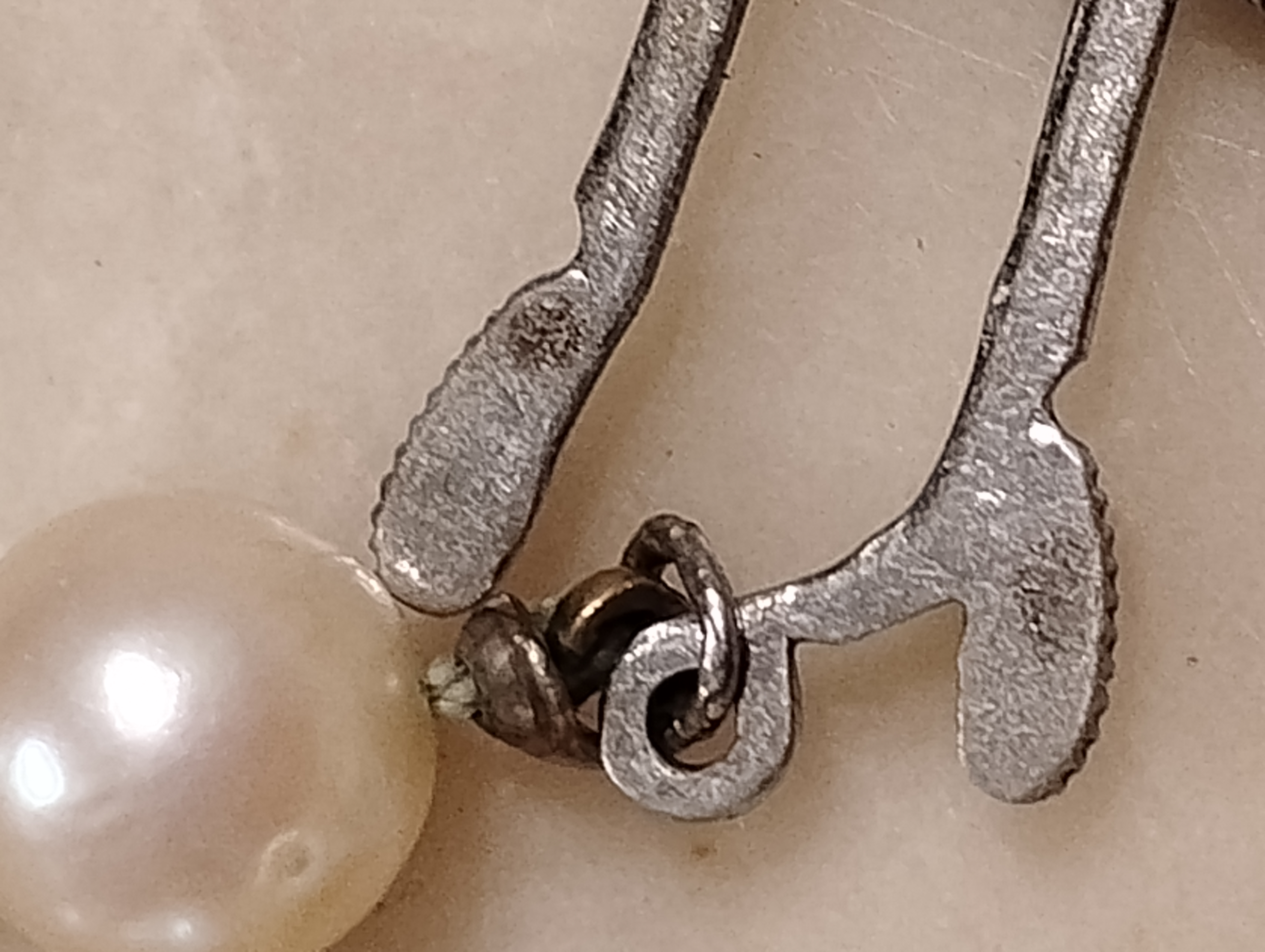 The style and materials used suggest a mid-20th century origin, common for vintage pearl jewelry.