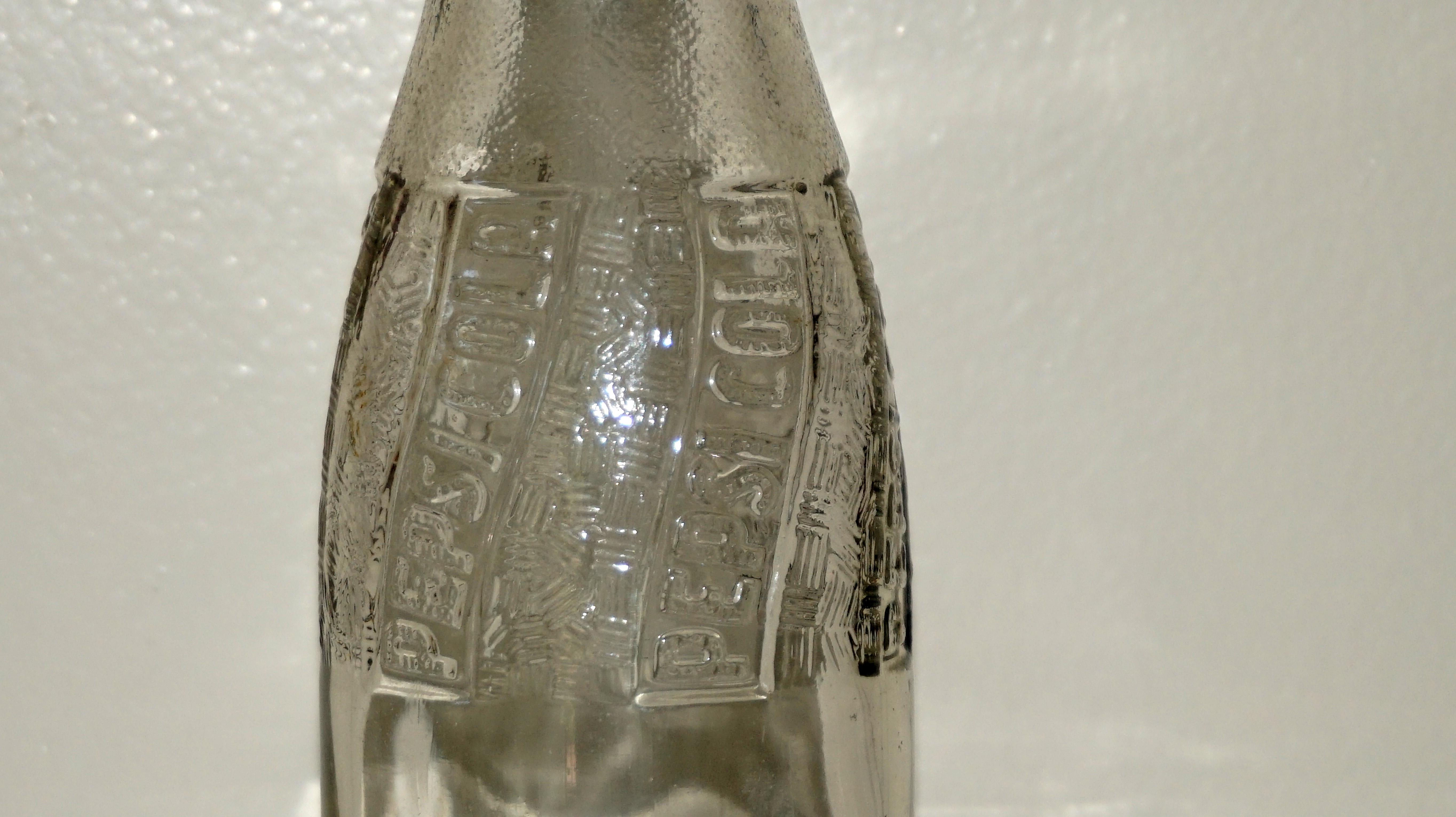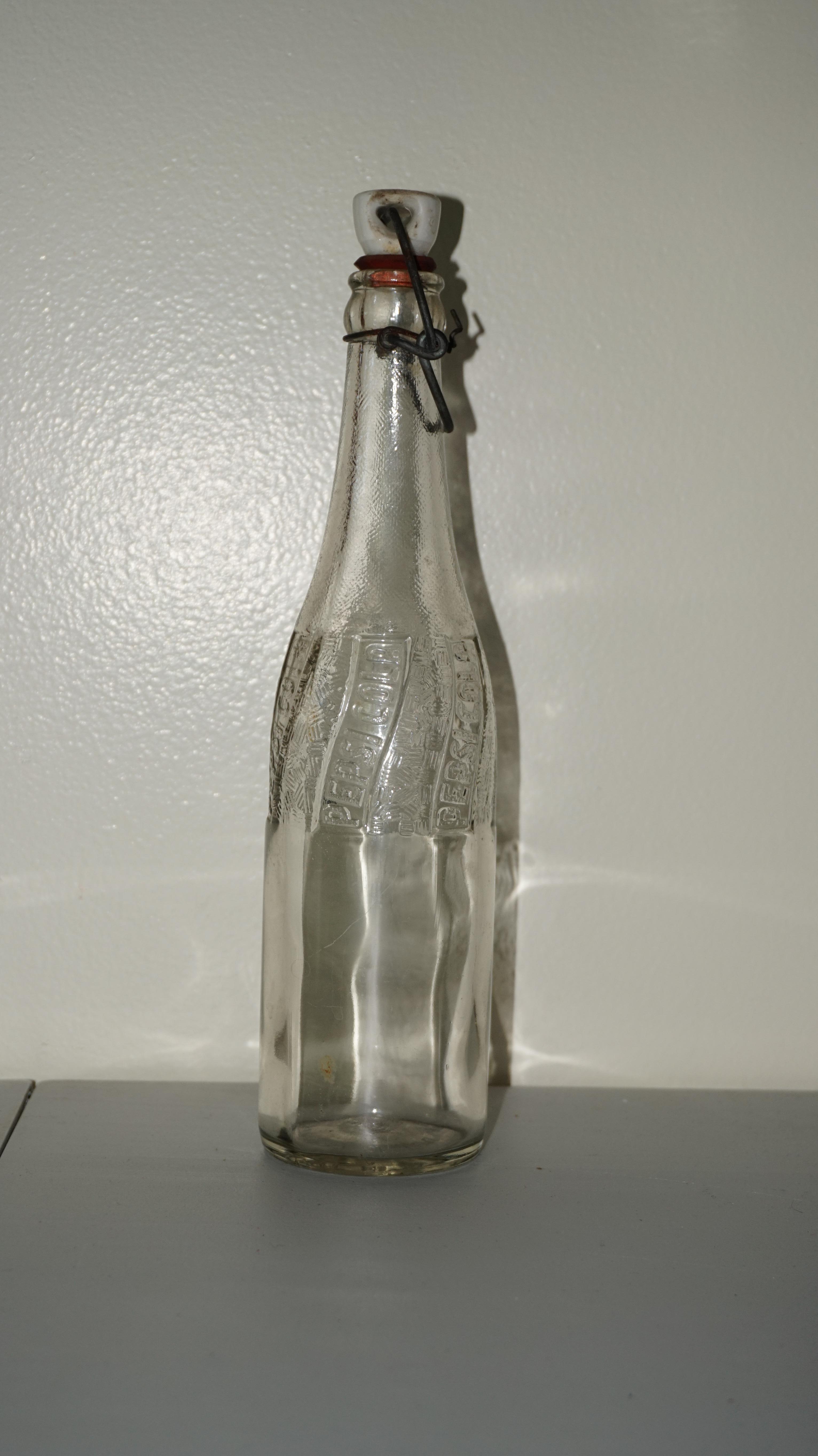 Vintage Pepsi Cola clear glass bottle with ceramic stopper with rubber seal.