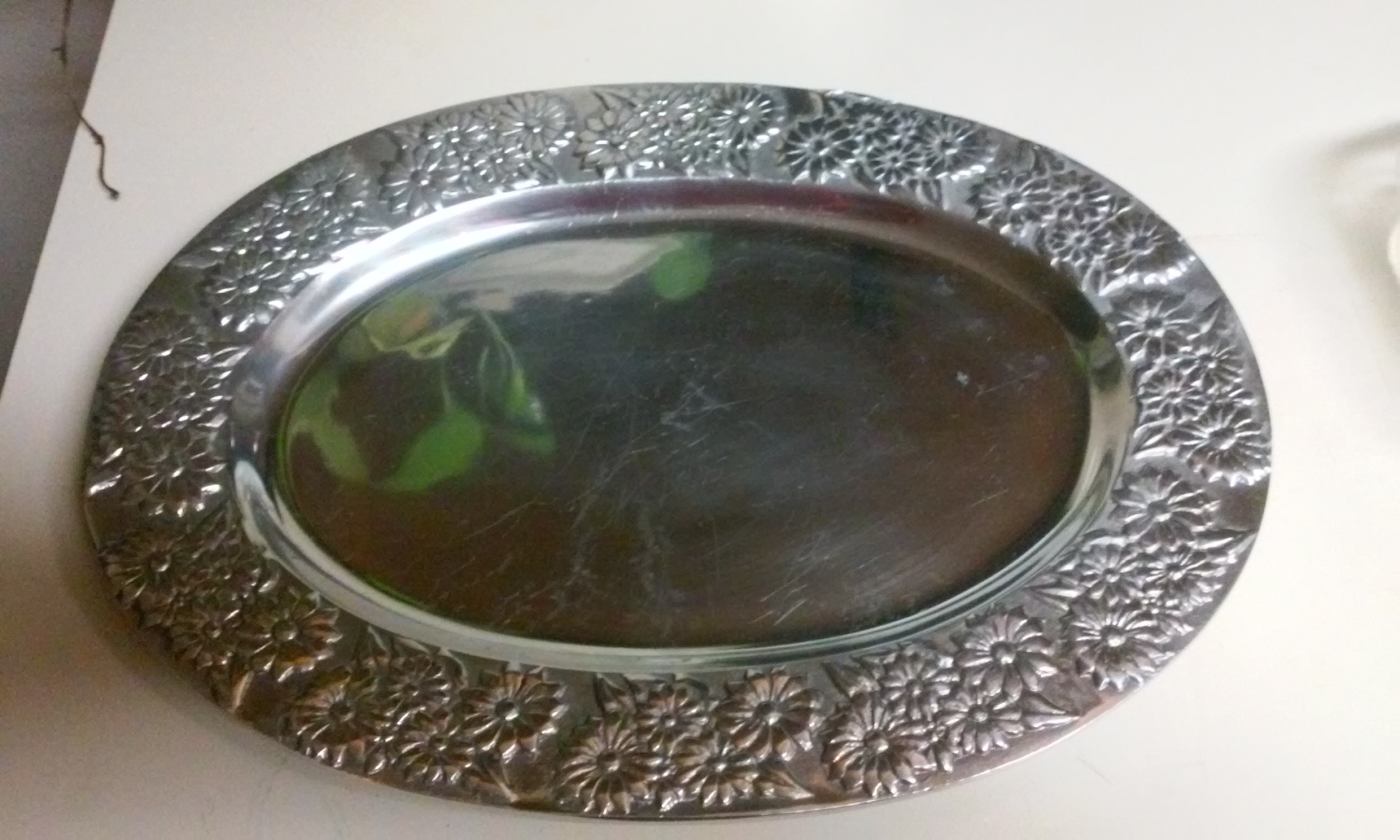 Oval serving tray flowers on rim