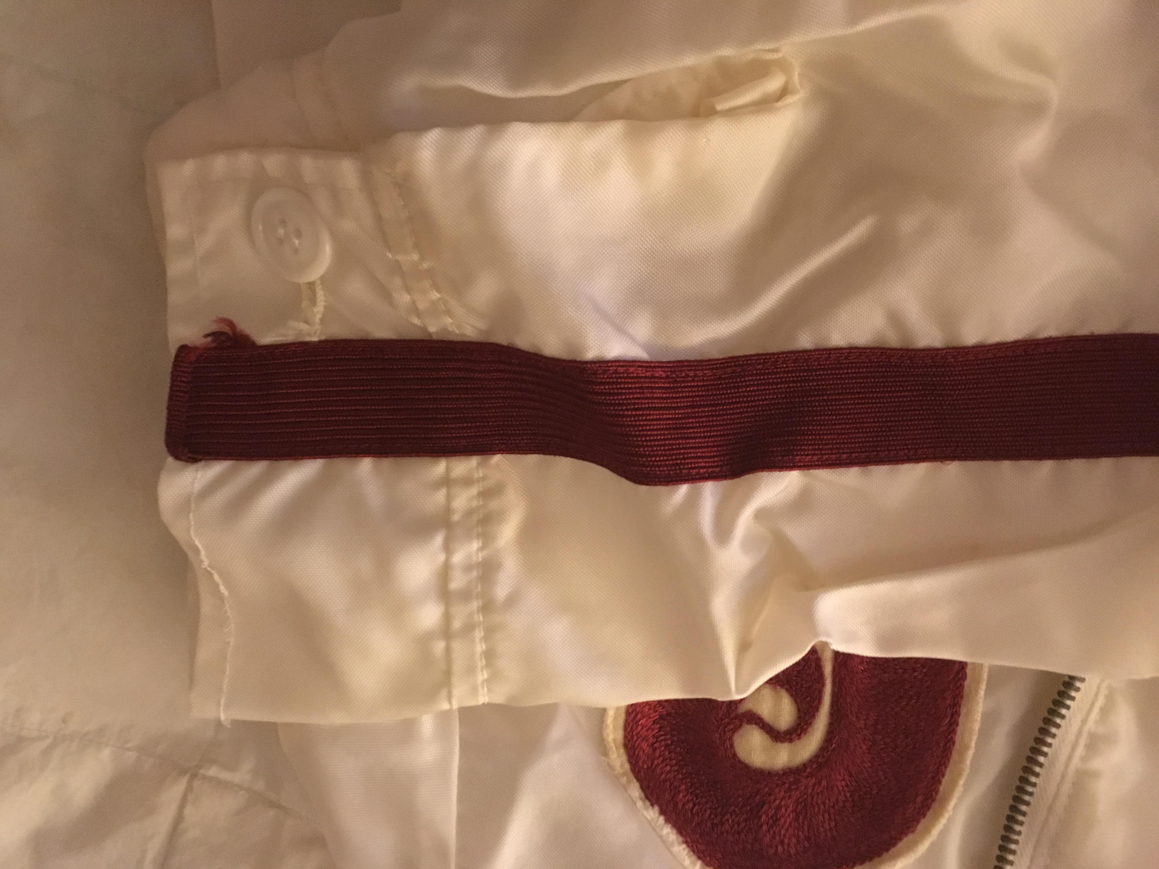 My great uncle gave me this jacket and told me that it belonged to a player.  The name had been rubbed out so they didn't know who.  This is about all I know about it.  I do not know what year team it came from.