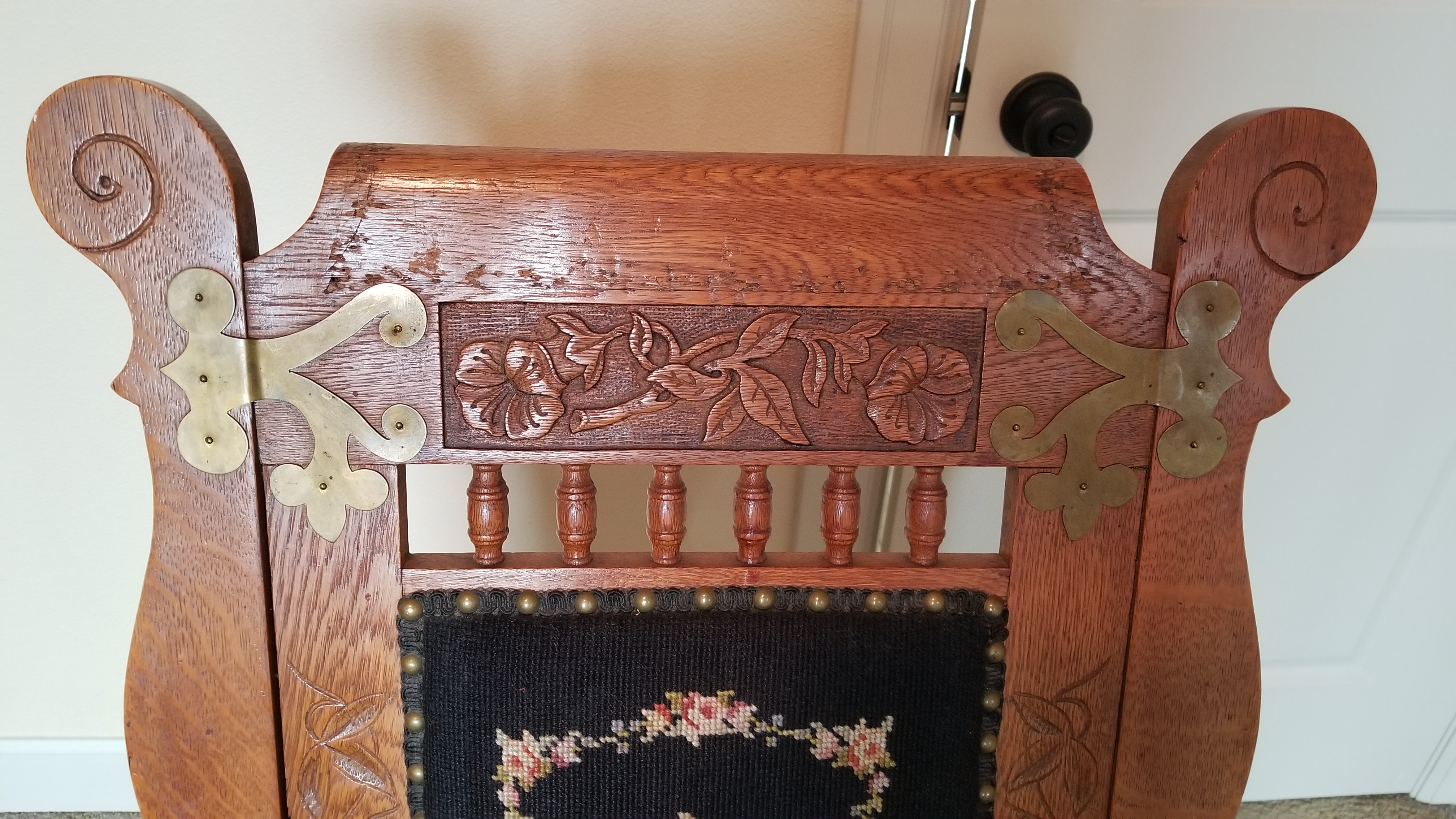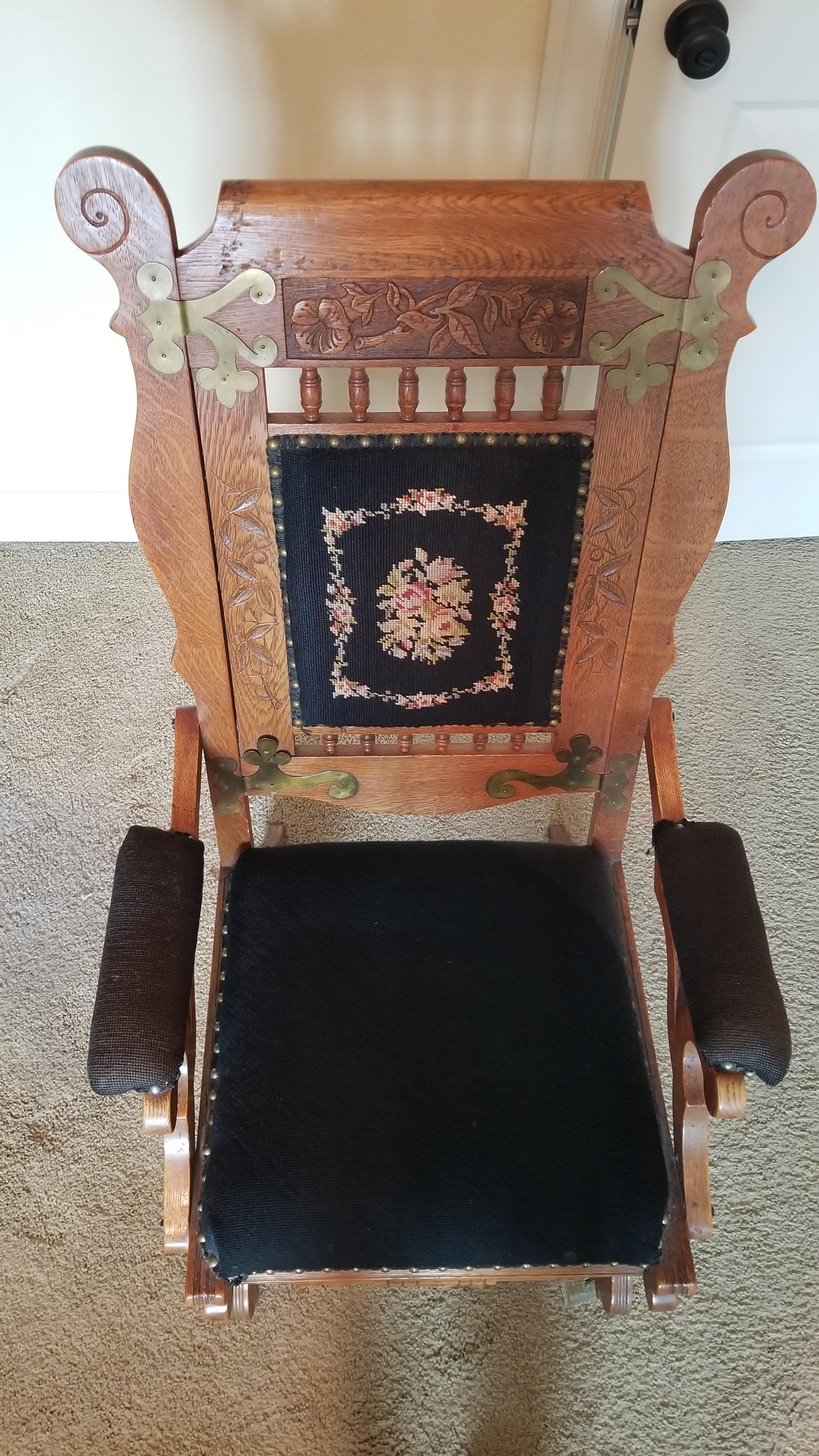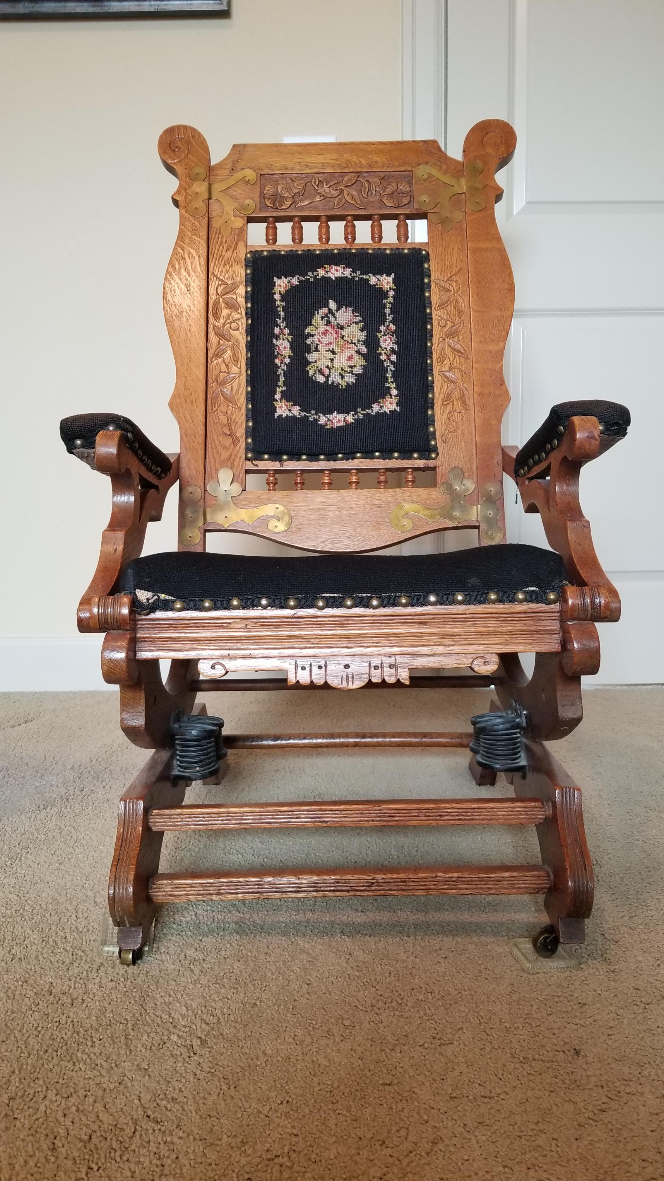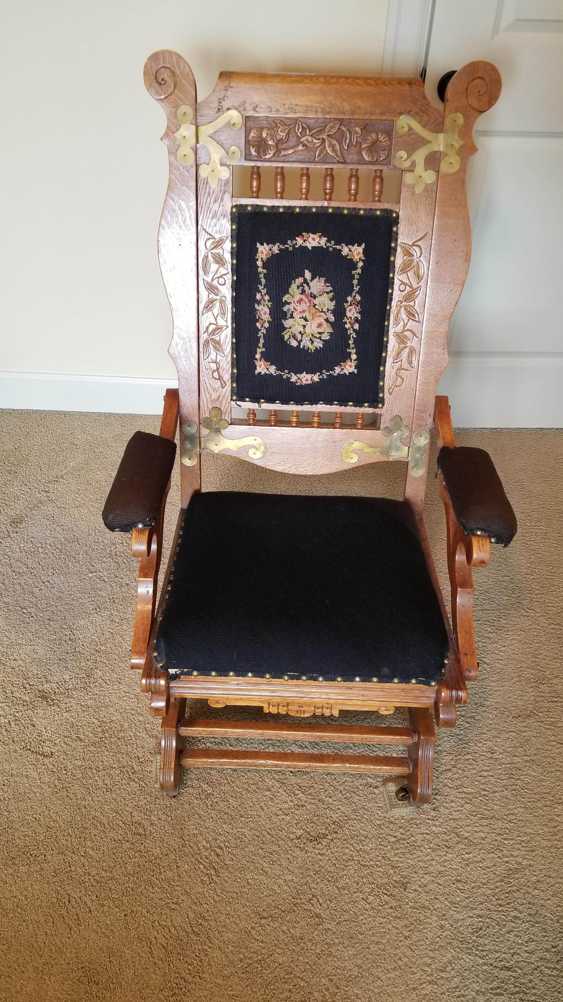 Vintage platform rocking chair with metallic embellishments
