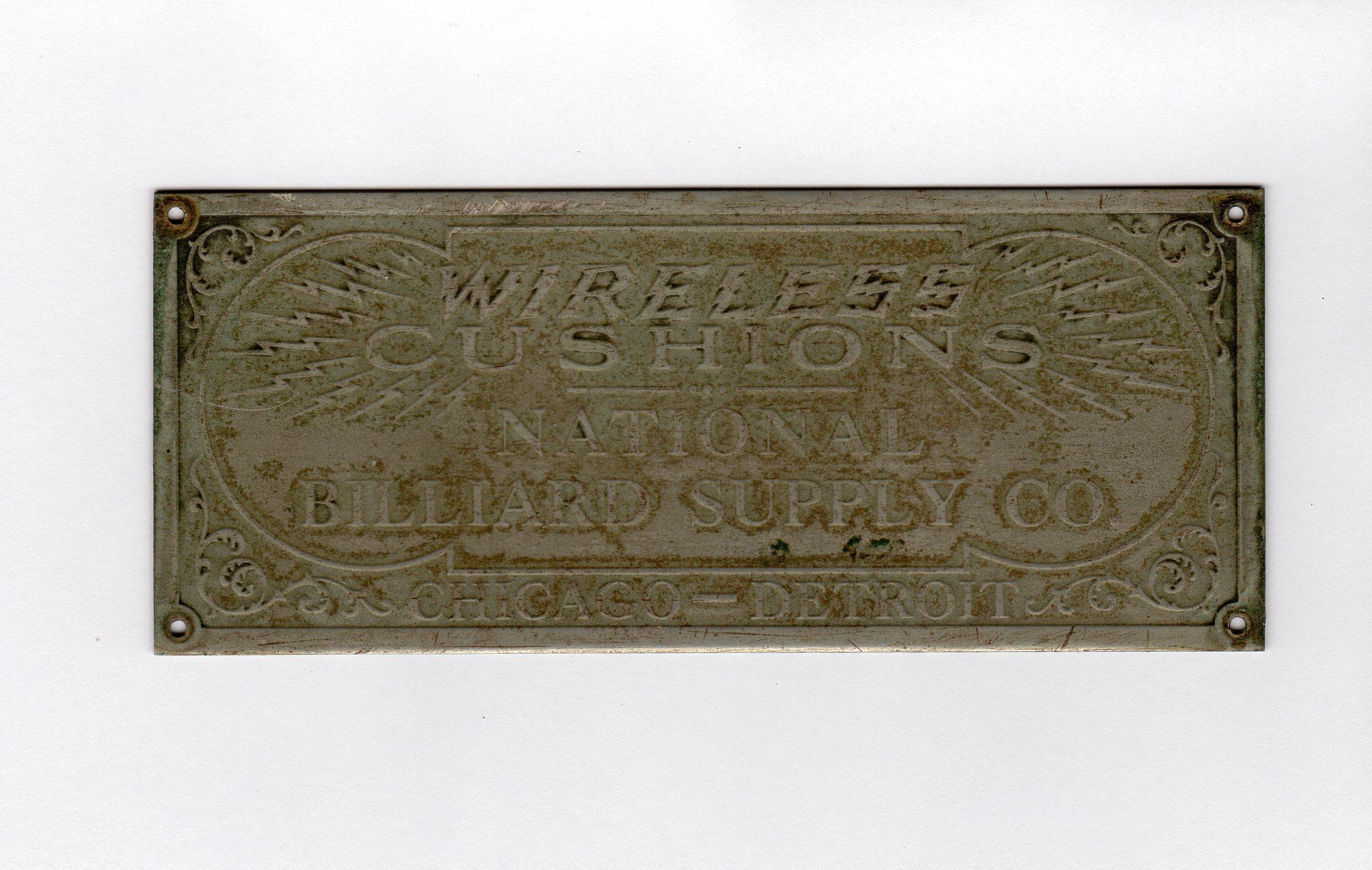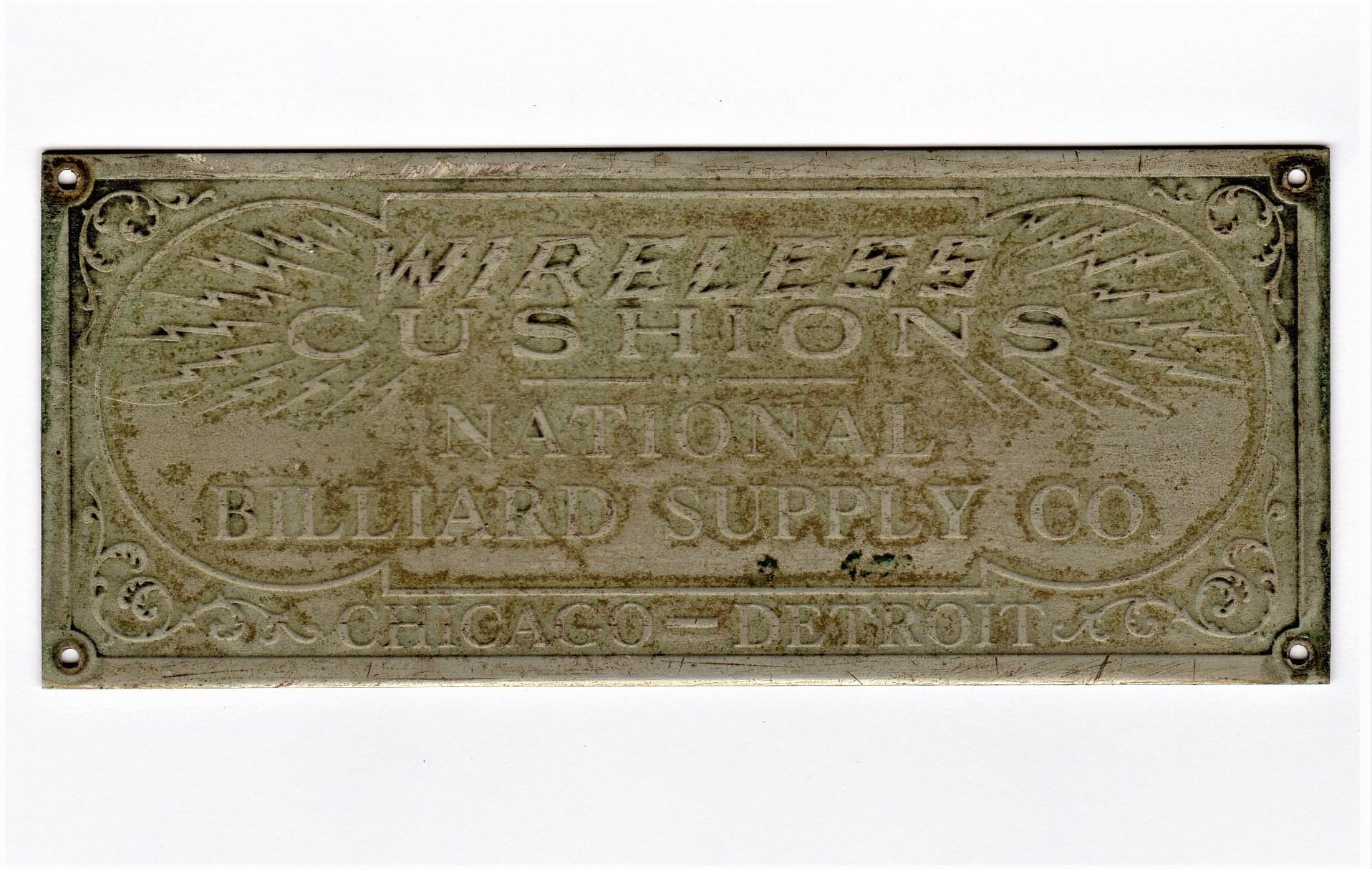 Vintage Pool Table Plaque - "Wireless Cushions"