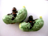 These shakers were made in Japan during the period of 1920-1949, likely around the time of World War II. They were brought back to the U.S. by a Navy serviceman stationed in Japan during the occupation. The whimsical design reflects the playful aesthetics popular in mid-century collectibles.
