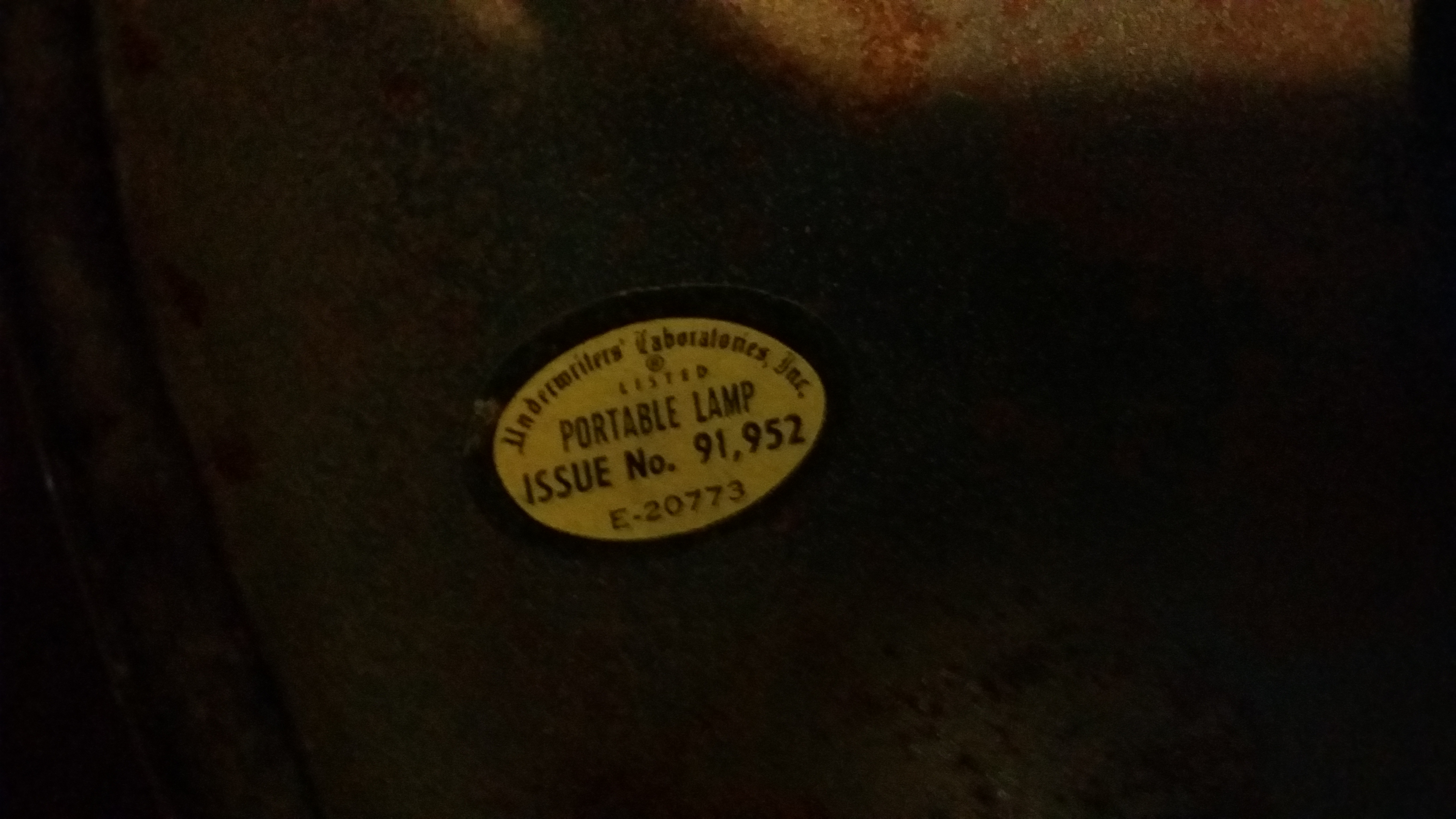 Label on bottom says underwriters laboratories, issue number 91952. E-20773