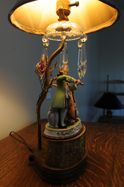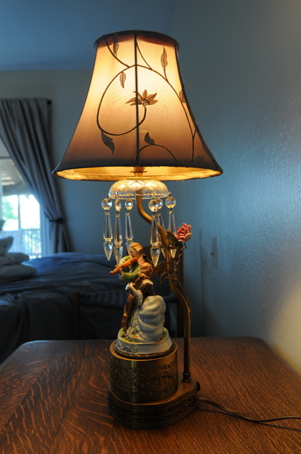 I suppose a picture or pictures are worth a thousand words.  Does anyone have an idea what this lamp is all about?   It's year or manufacture, maker, origin, estimated value range?