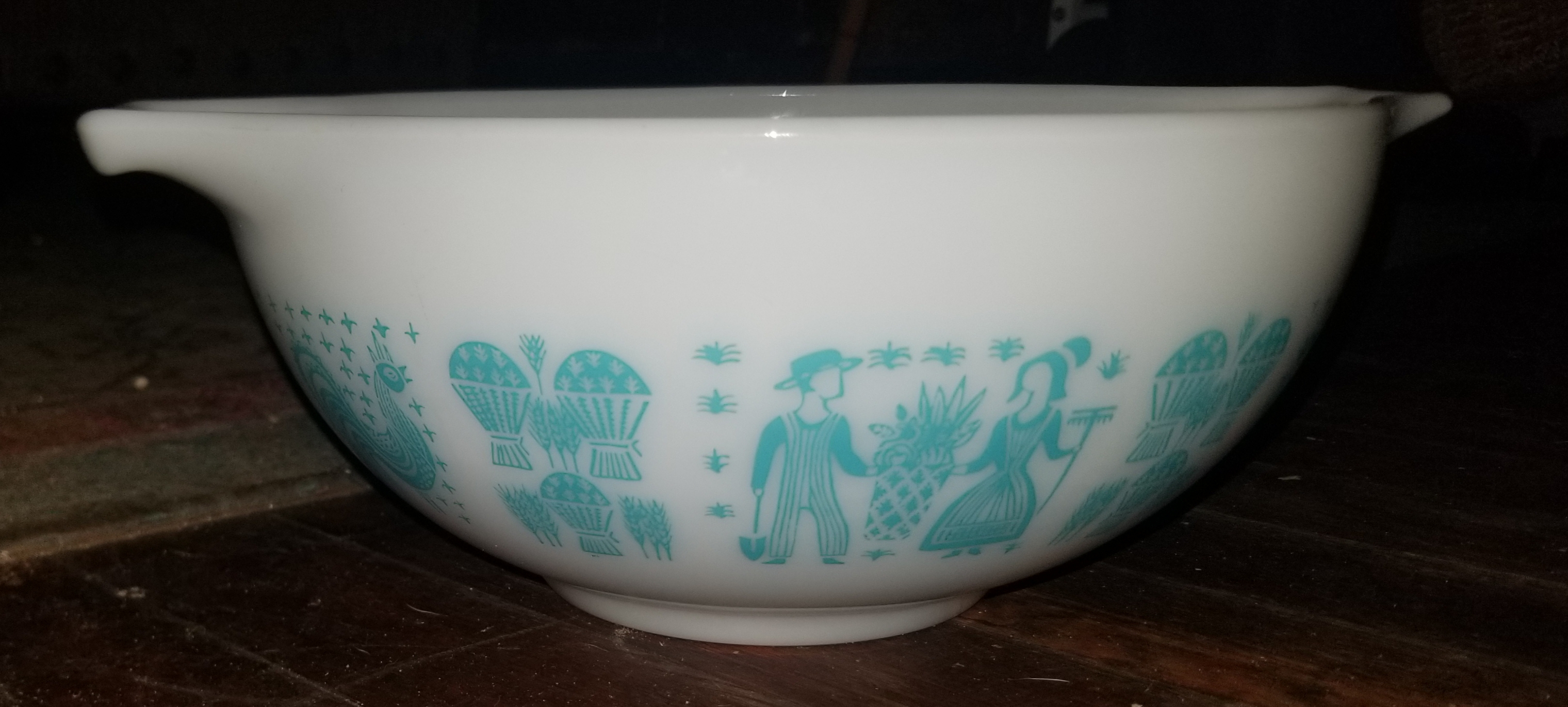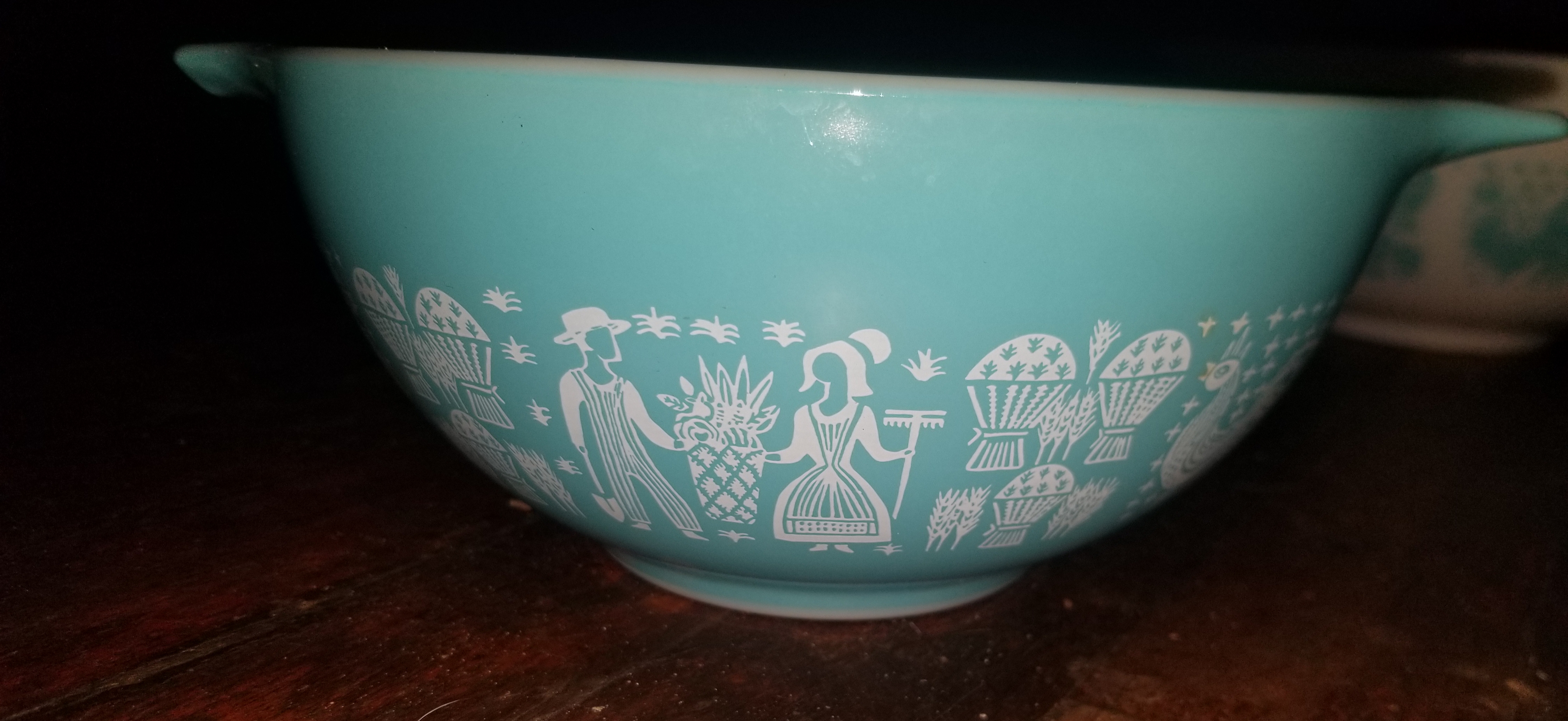 Vintage Pyrex mixing bowls set of 4. Sizes are 1.5p, 1.5qrt, 2.5qrt, and 4qrt. Each are in great condition. There's no chips, cracks, stains or any other blemishes.