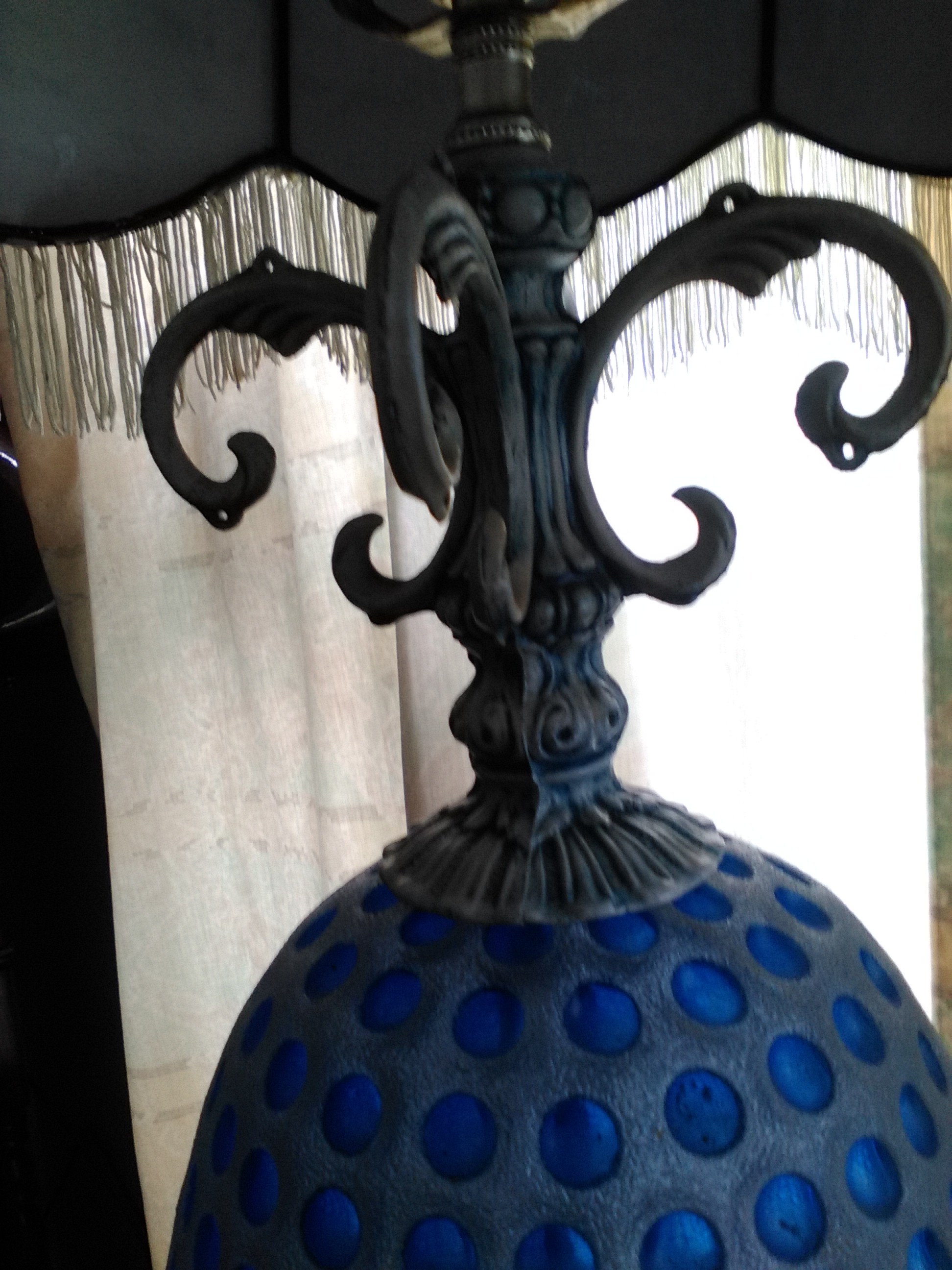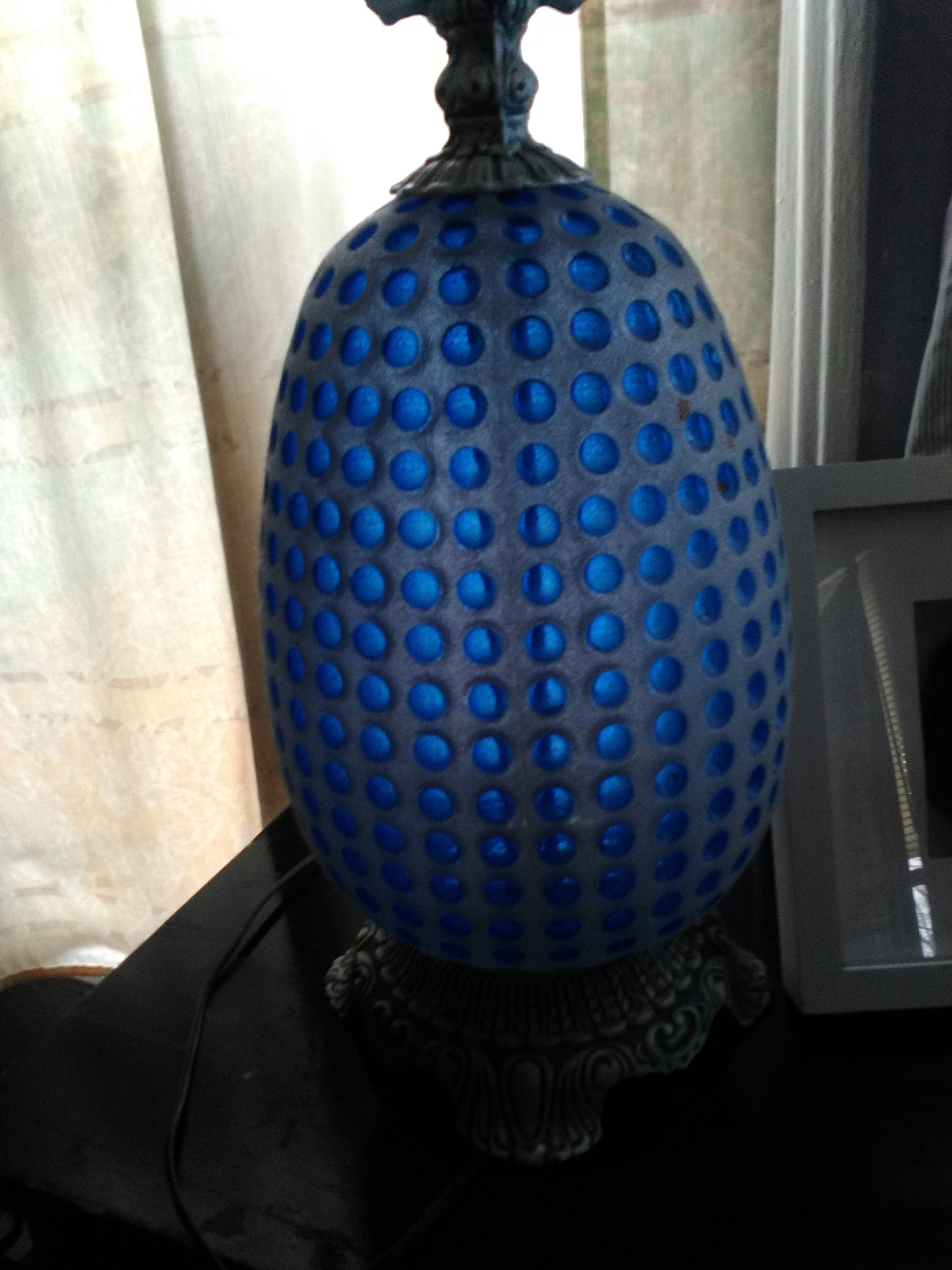 I am curious on how much this lamp is worth. The top and bottom piece are metal. The glass reads NEMO 1973 and the metal pieces read E.K. 1972. It's about 3 ft tall and the glass is about 10 to 11 inches wide.