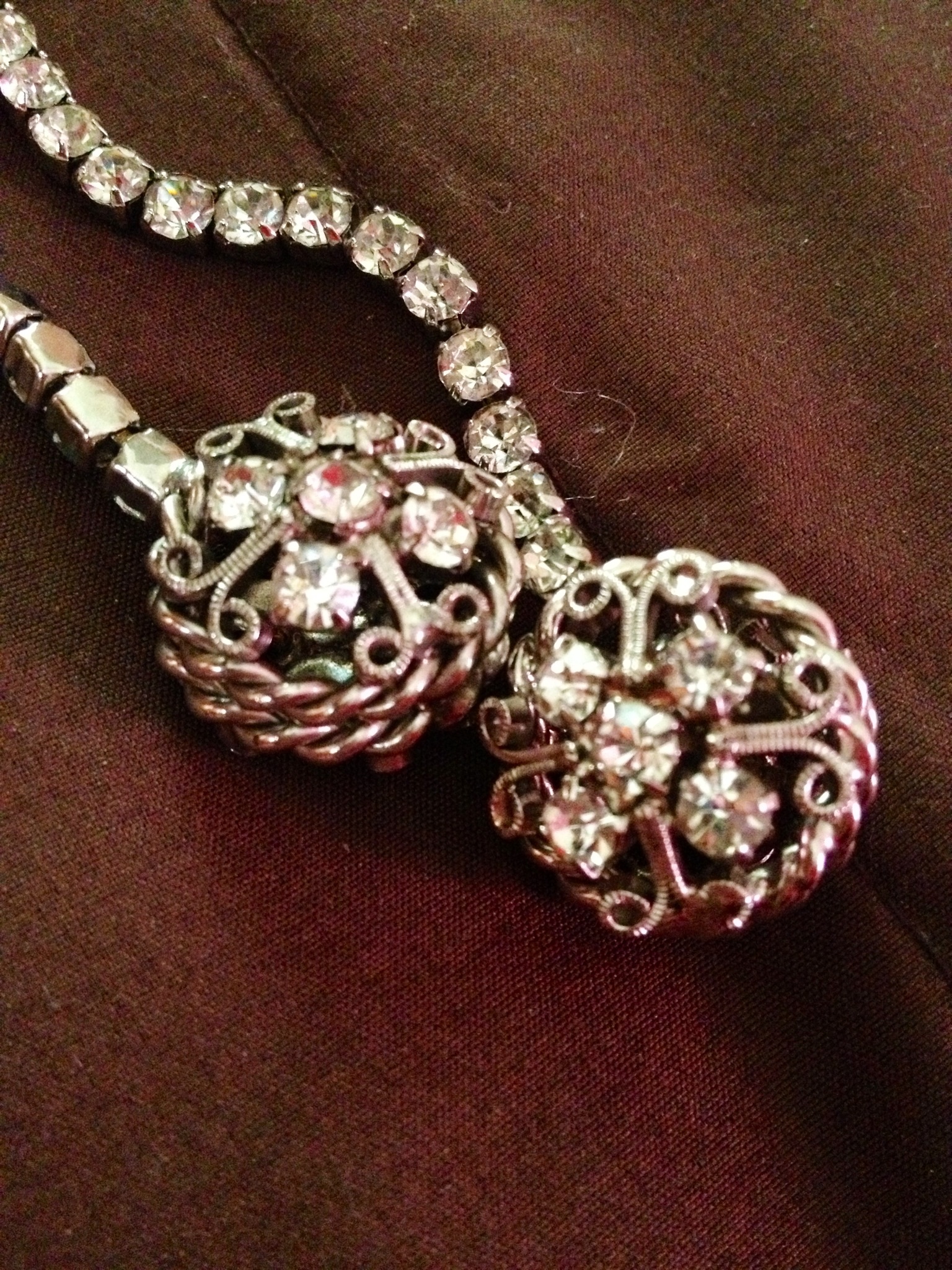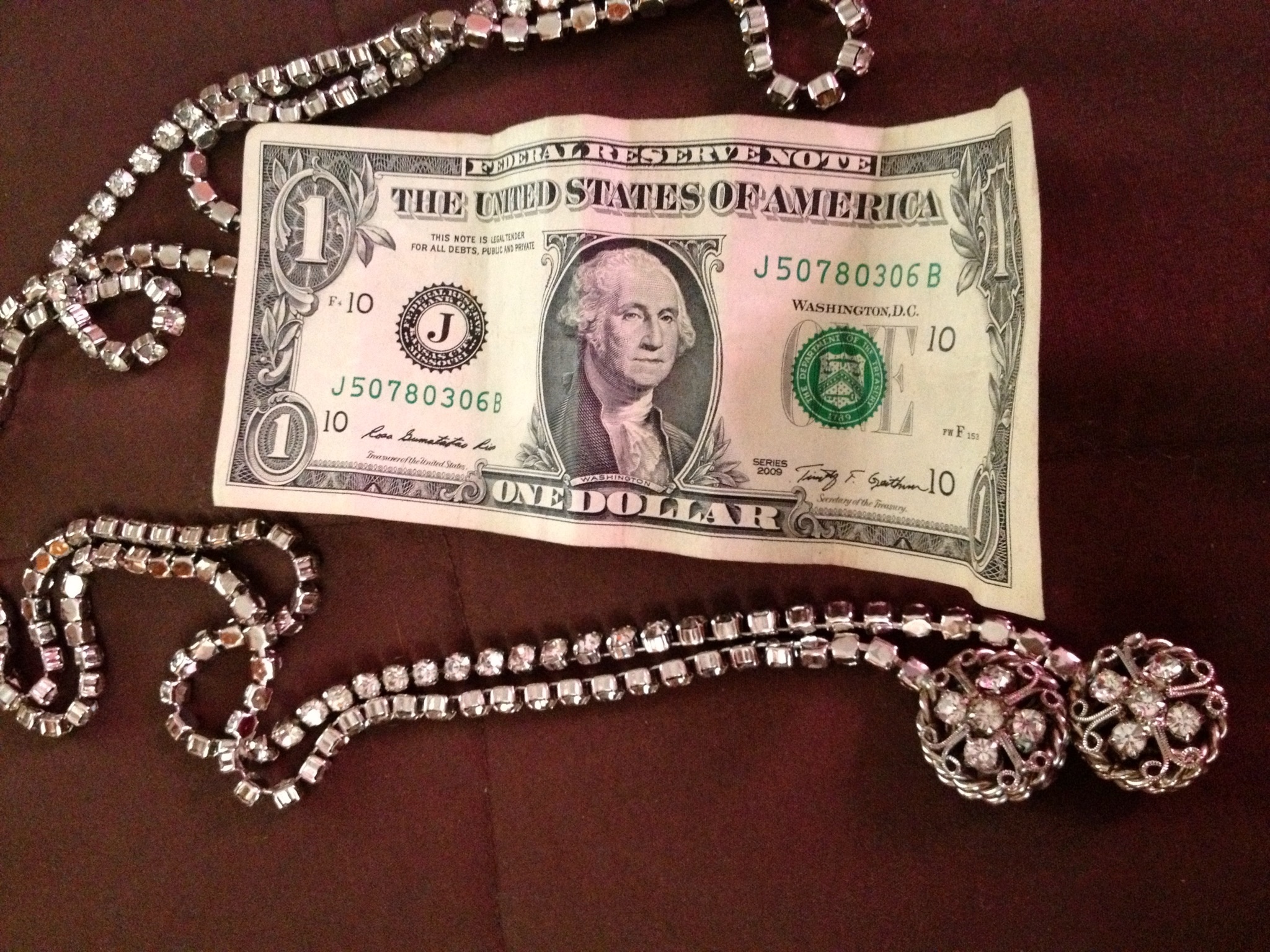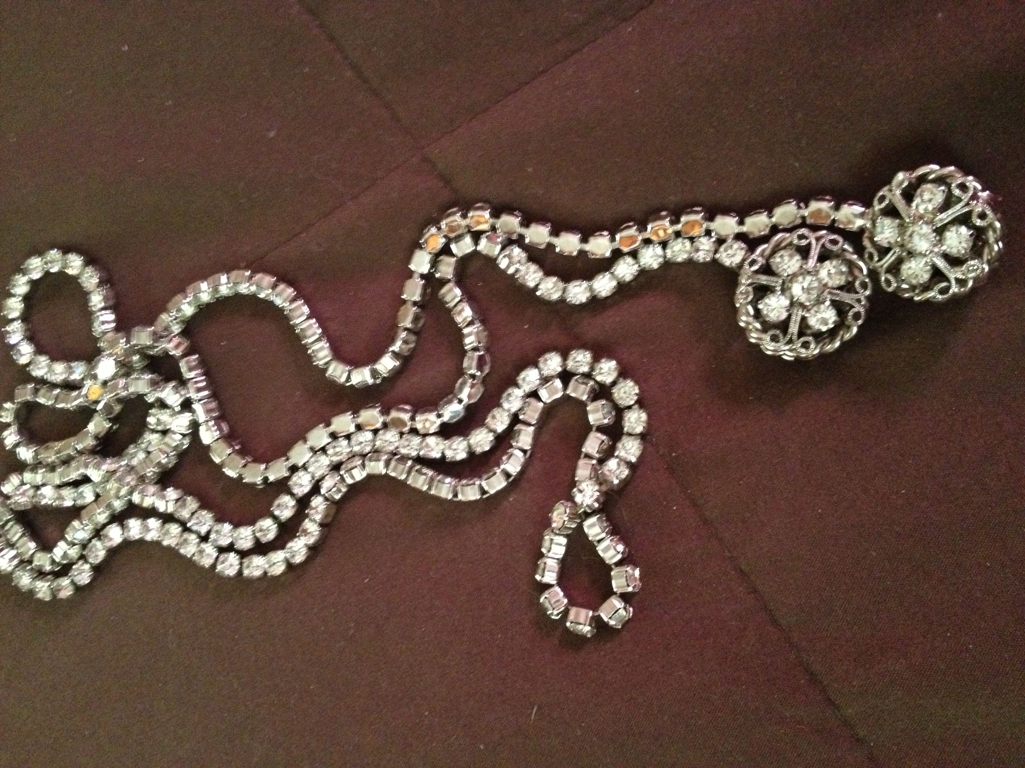 I inherited this very nice Lariat style rhinestone piece from a relative who had very high quality costume jewelry. I am not sure exactly how old it is and have no info about it. I cannot find a Maker's mark. It is 48" long and is in perfect condition. What looks like discoloration in the picture is reflection. The stones are perfectly intact and all clear.. No flaws whatsoever. I would love to have an idea of when it was made and what it's worth. I "kno" it is (most likely) from 1920-1950's.. But that's all I know. Any help would be appreciated. Thank you.