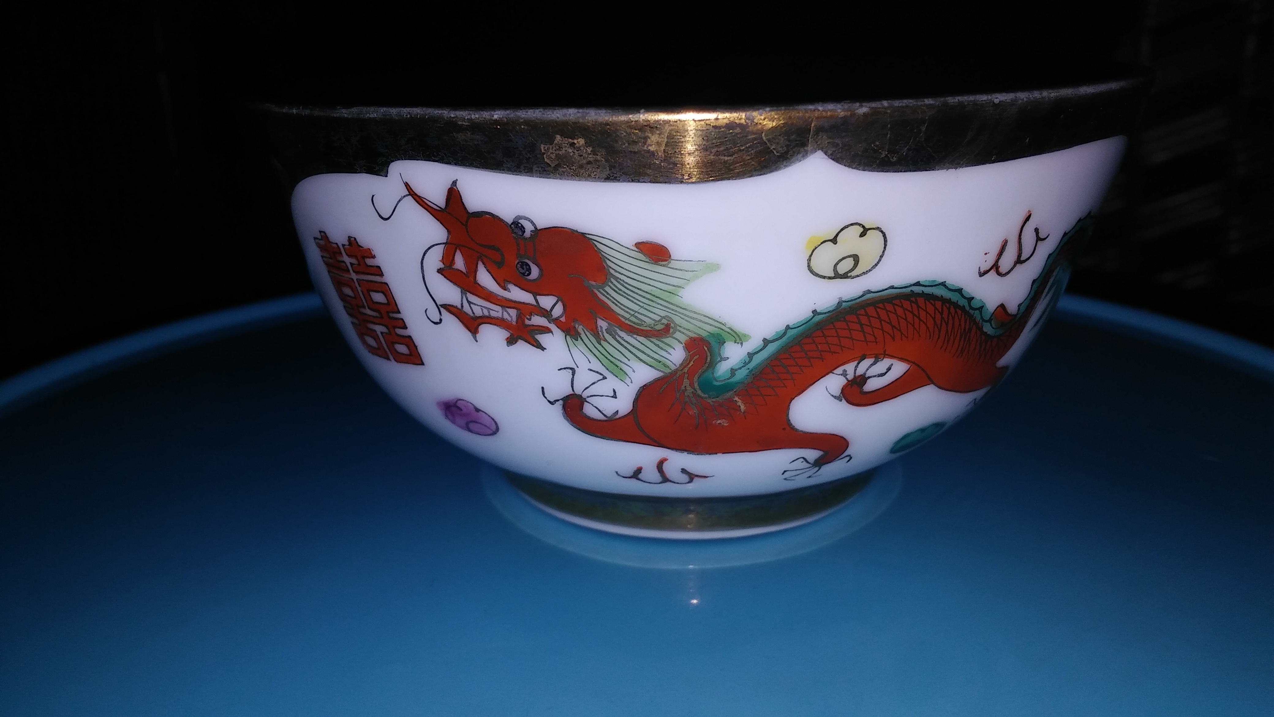 Dragon and Bird design. Gold trim. And Chinese writting