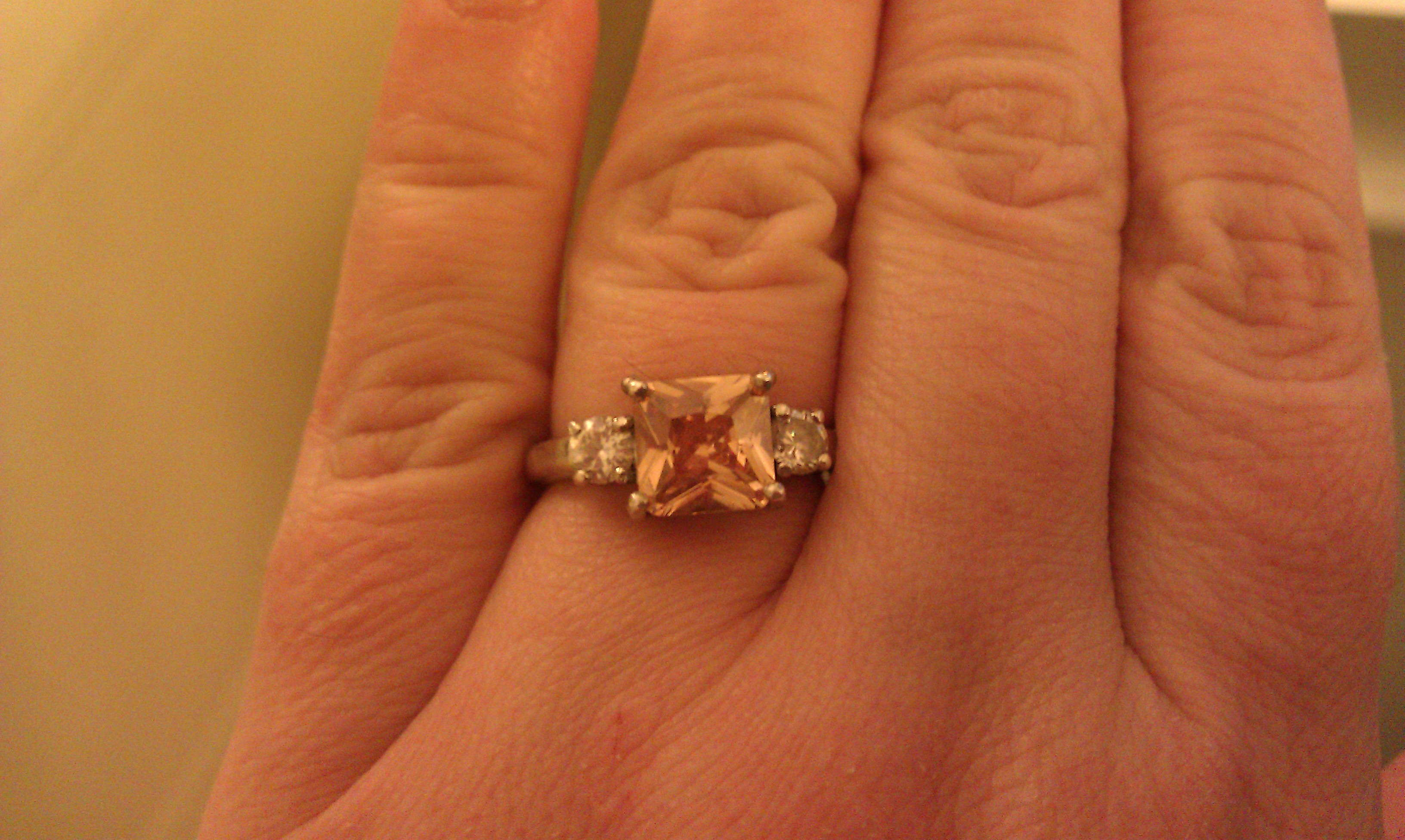 Vintage sterling silver ring with pink-peachish colored stone and diamond-like bagget stones found in an antique store in New Mexico.  Interested in finding out what the stone is and possible age.  Is a beautiful ring that I love and am not interested in parting with, just wondering if anyone has any ideas about it.  Thanks so much!