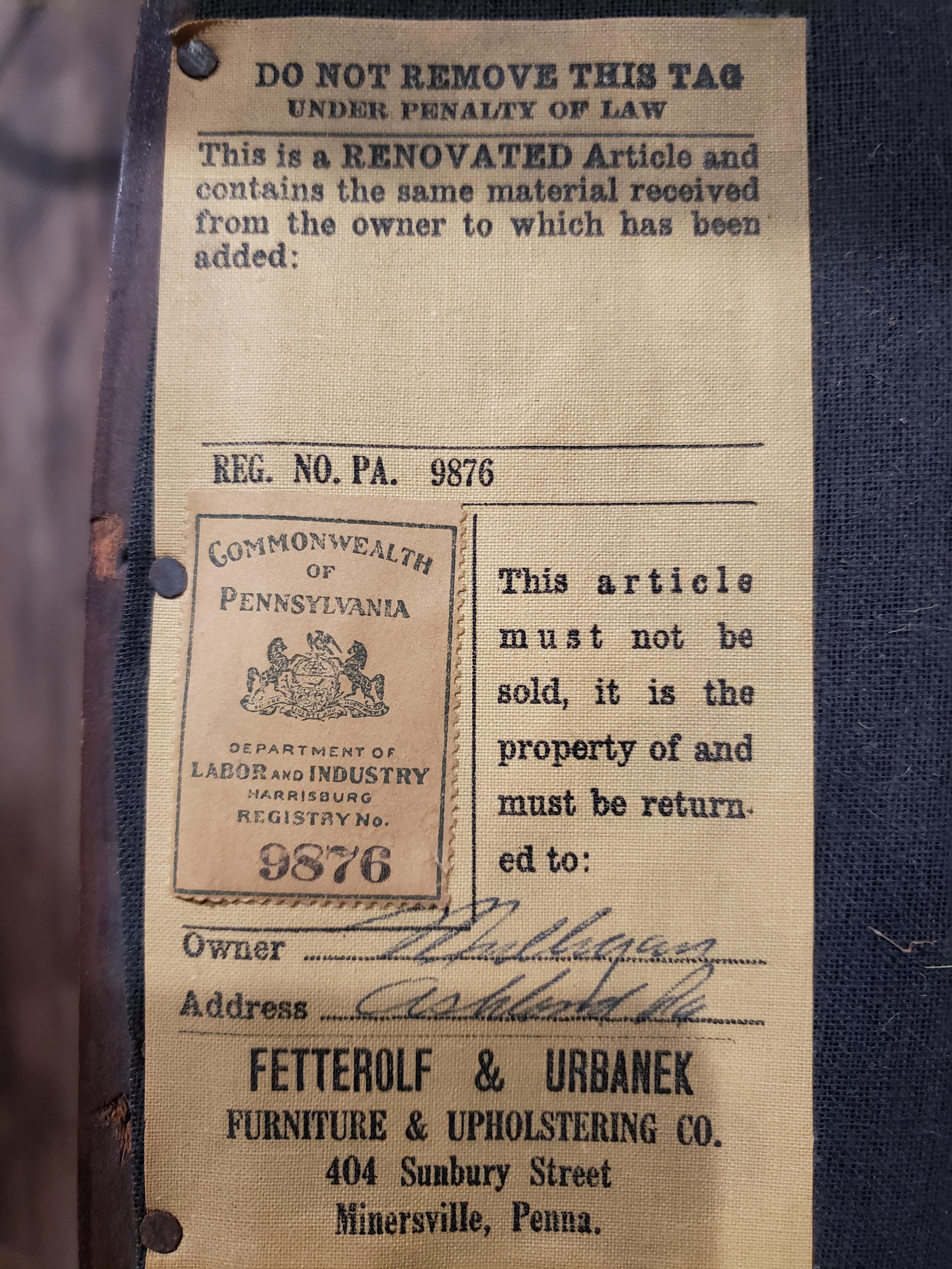I have this rocker that i got it says fetterolf&urbanek on bottom with a common wealth of Pennsylvania reg # 9876 on it any info would be great