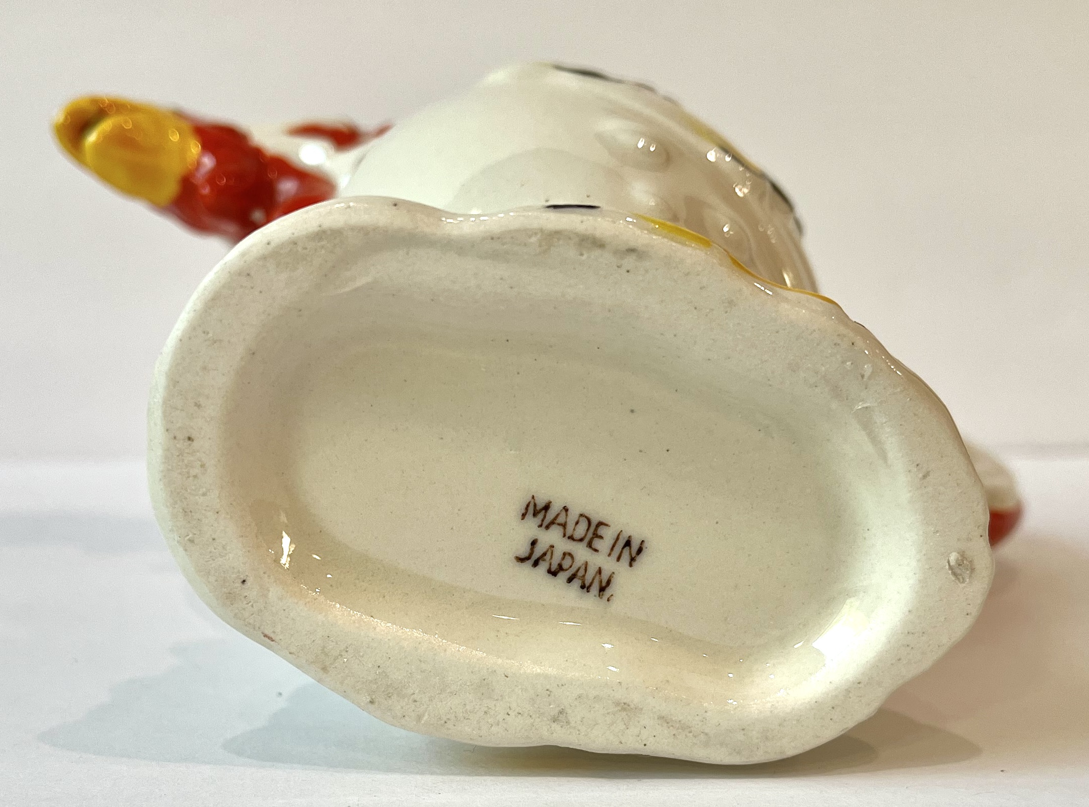 Collectors value pieces like this for their nostalgic charm and the cultural significance of post-war Japanese ceramics. The rooster motif is particularly popular in folk art and kitchenware, making it a desirable item for collectors of vintage ceramics and Americana.