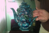 This pitcher dates back to the period around World War II, a time when many American soldiers brought back souvenirs from Japan. The design reflects the playful and decorative style popular in mid-20th century ceramics. While the exact maker is not identified, many Japanese ceramics of this era were known for their craftsmanship and unique designs.