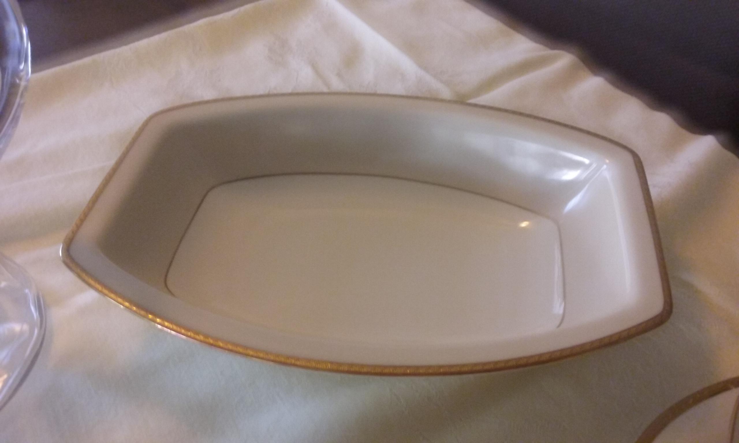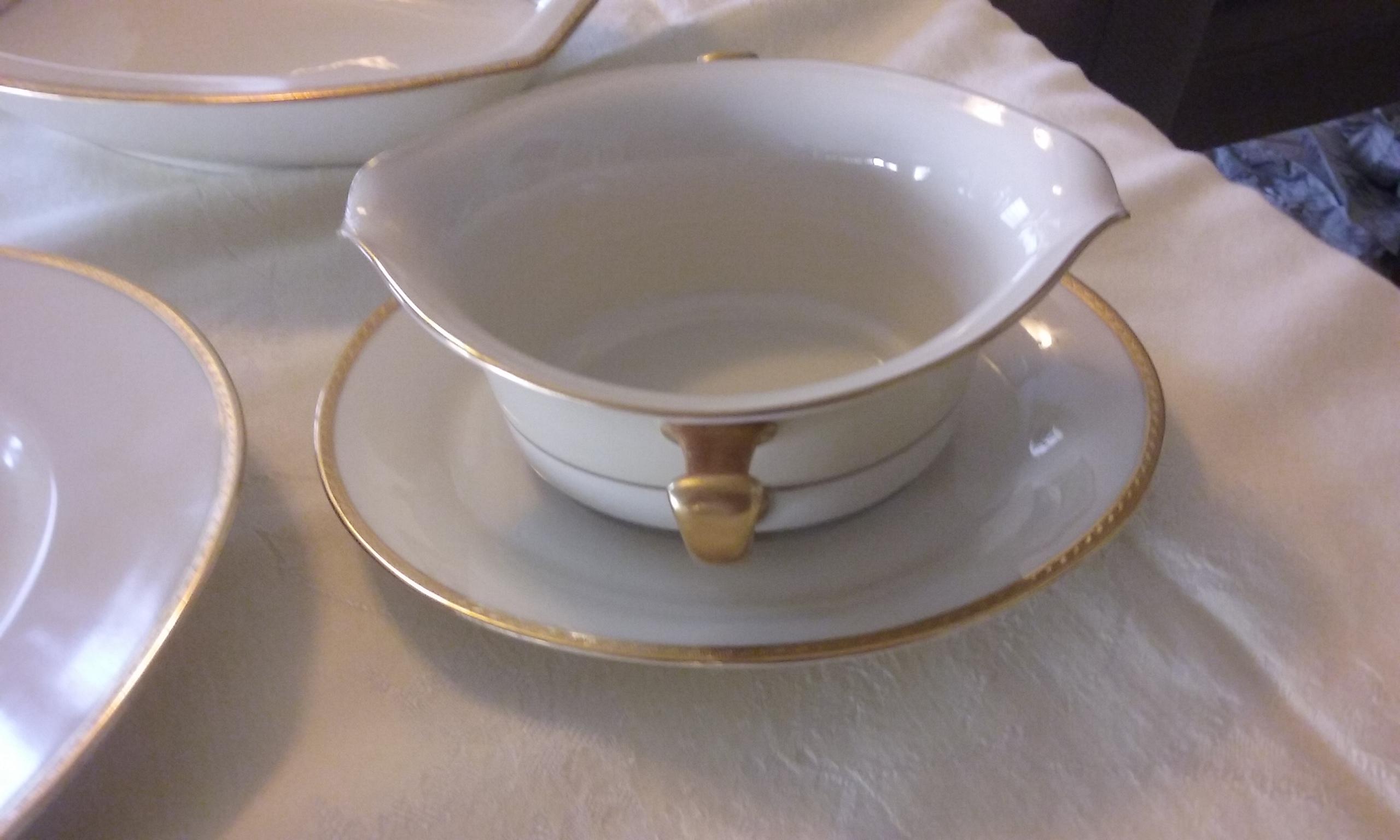 also, 1 each - rectangle serving bowl, gravy boat with underplate, large plater, vegetable bowl, and round plater
