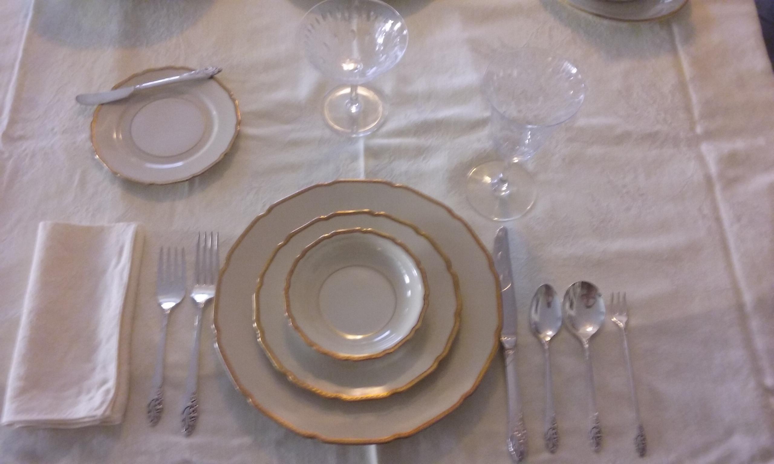 includes: 12 each - dinner plates, salad plates, butter plates & dessert bowls