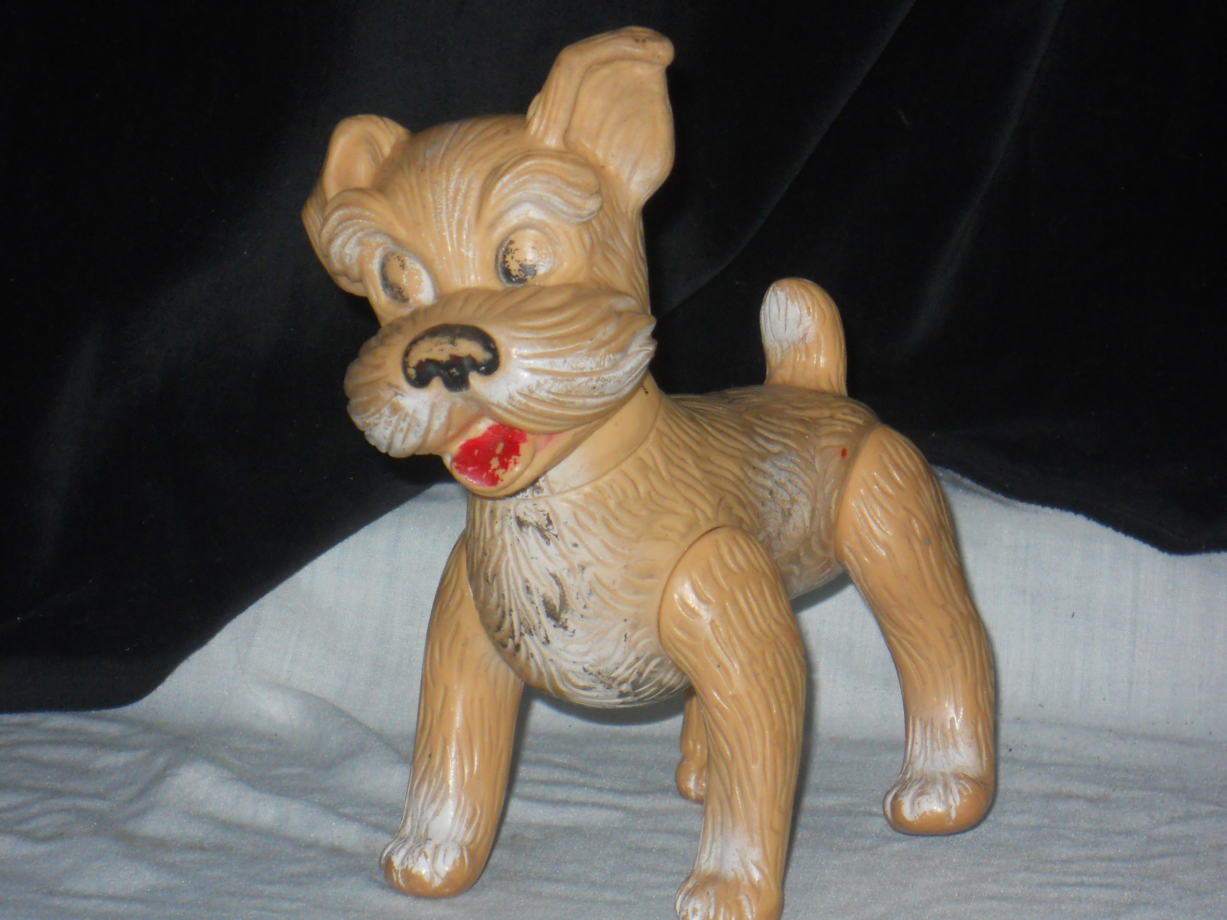 Rubber Toy Dog - used to have a squeeker (doesn't work). It's possible my brother got it with his first pair of Buster Brown shoes, but not sure.