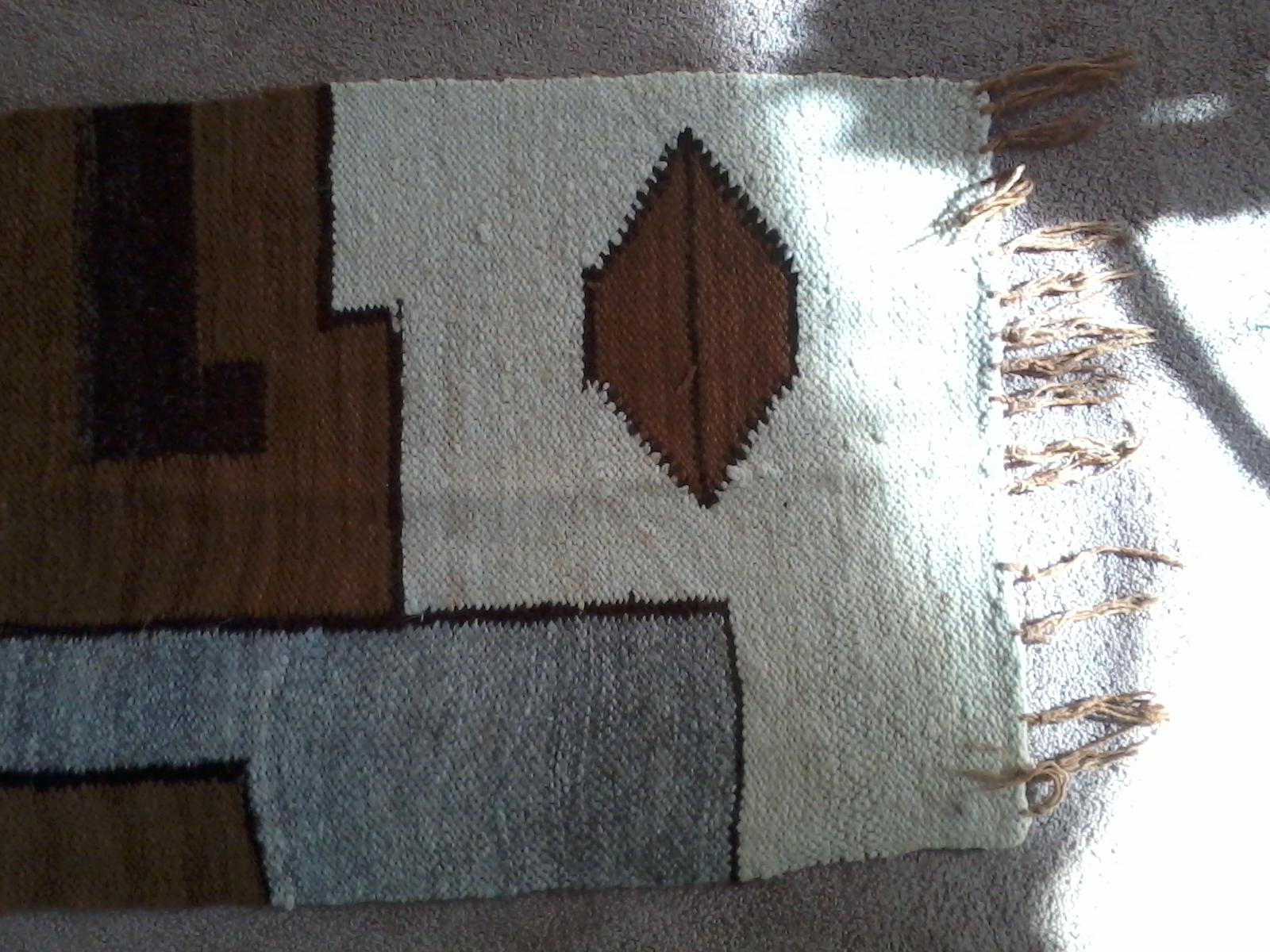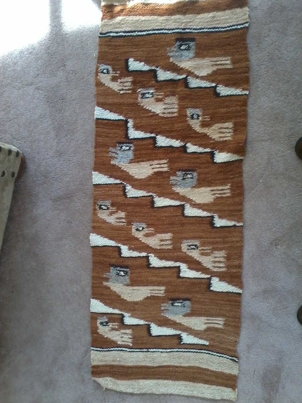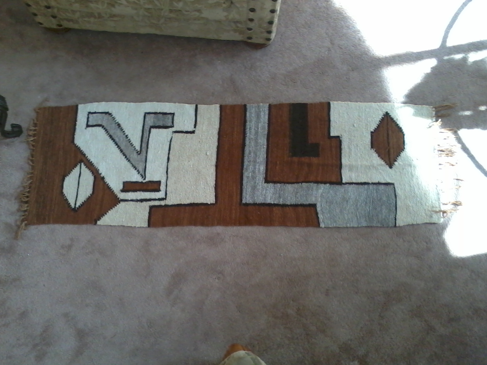 Great-aunt recently passed and I now have these two area rugs/ wall hangings, but am not entirely sure what I have. She traveled the world, collected pieces from all over. The Peruvian rug with the browns, gray and white is a wool (95%) blend 64"x21". The rug in a bird motif doesn't have any tags or markings, is 56"x22". Please help me further identify the symbols/ meanings of the Peruvian rug and any information on the bird motif rug and their values. Have searched extensively online for comparable rugs, and only found a rug in a bird motif that was somewhat similar to the one I have, but there wasn't information I could use. Many thanks.