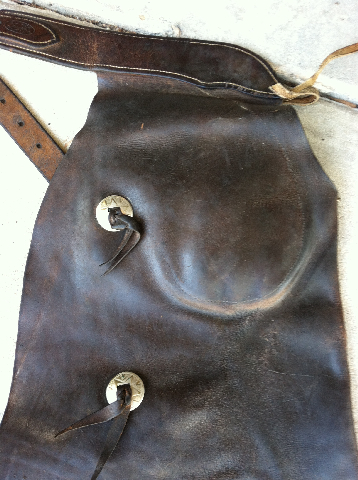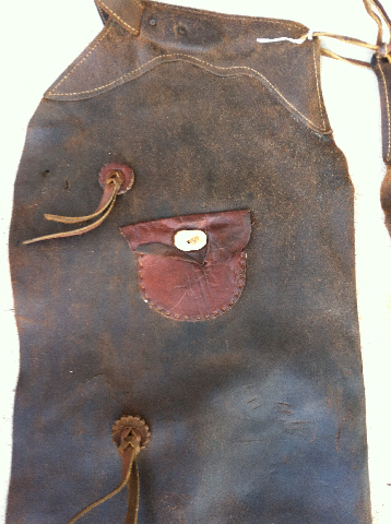 E.C. Irick Maker Craig Colorado stamp on chaps, hand stitched pocket on one pair.